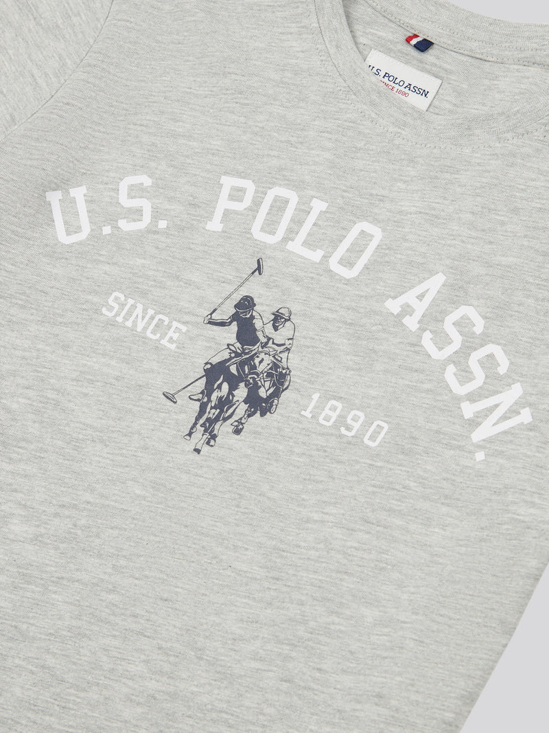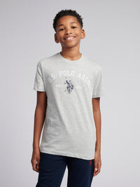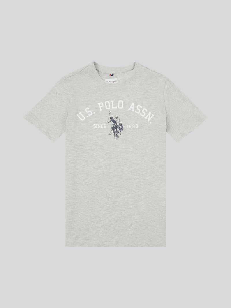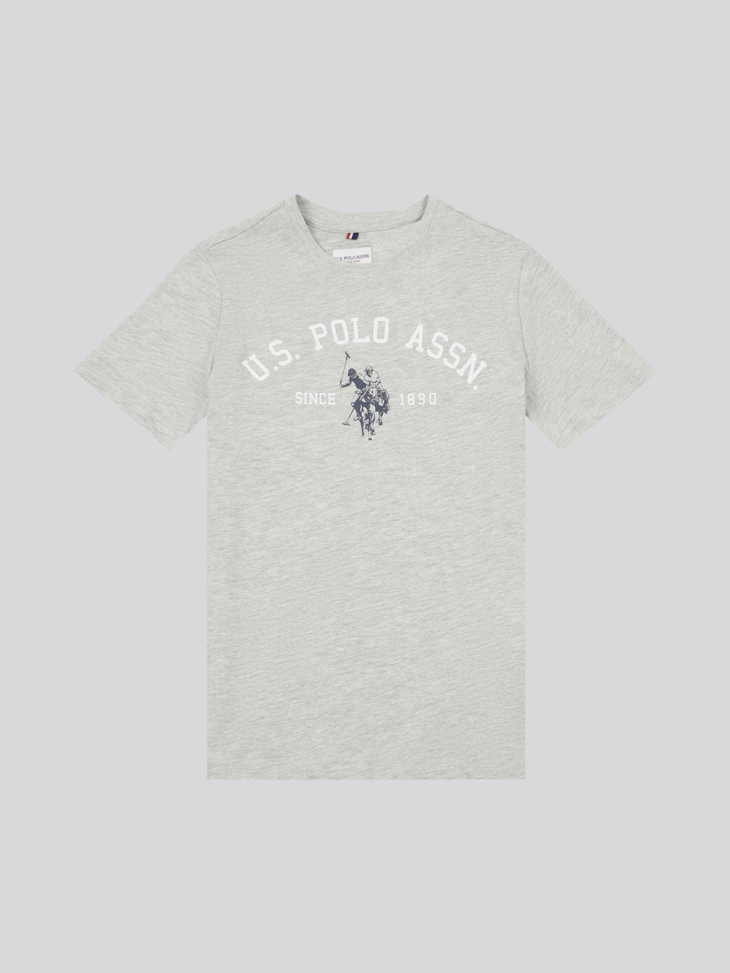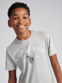 Boys Signature Arch Print T-Shirt in Mid Grey Marl