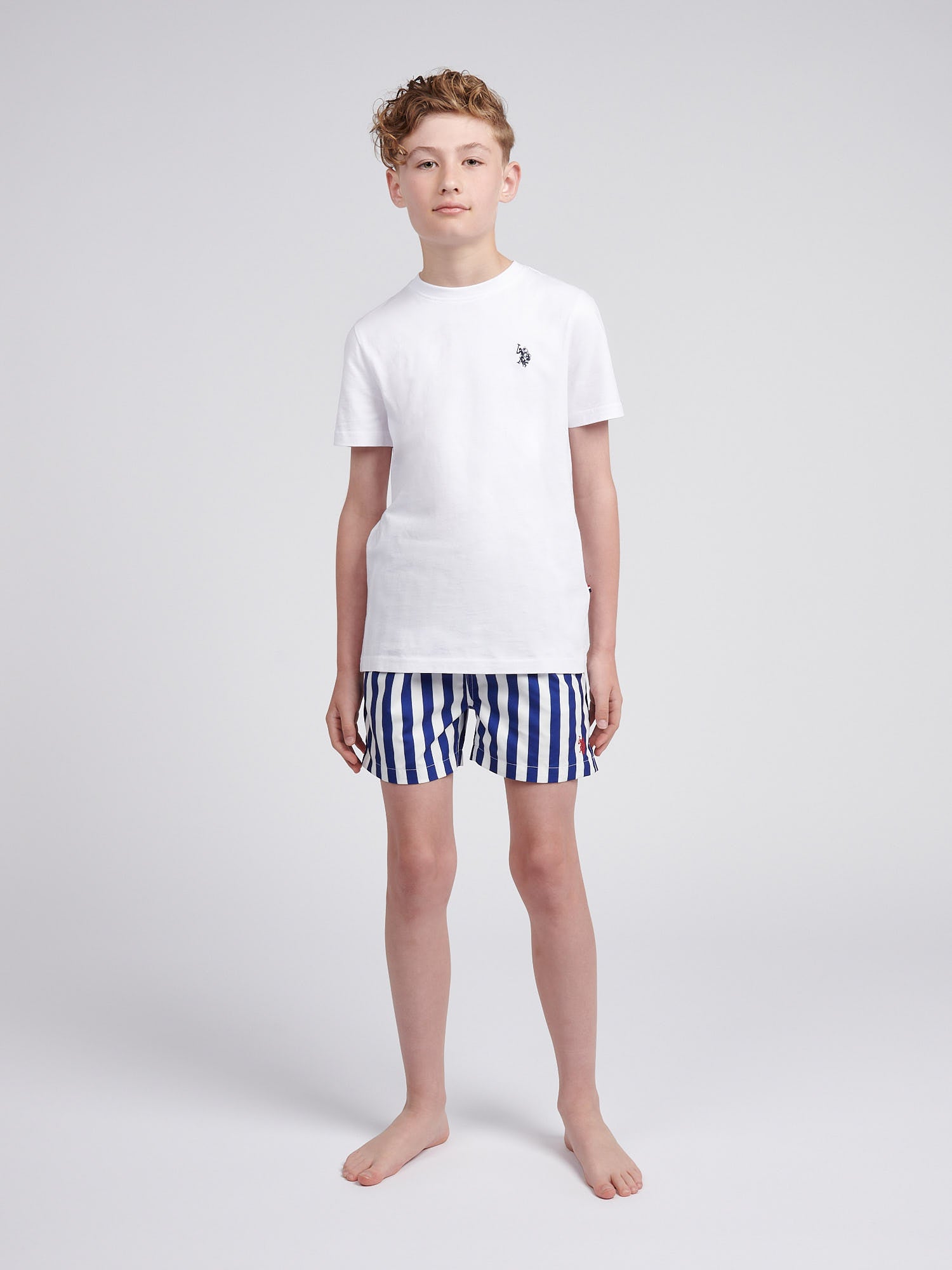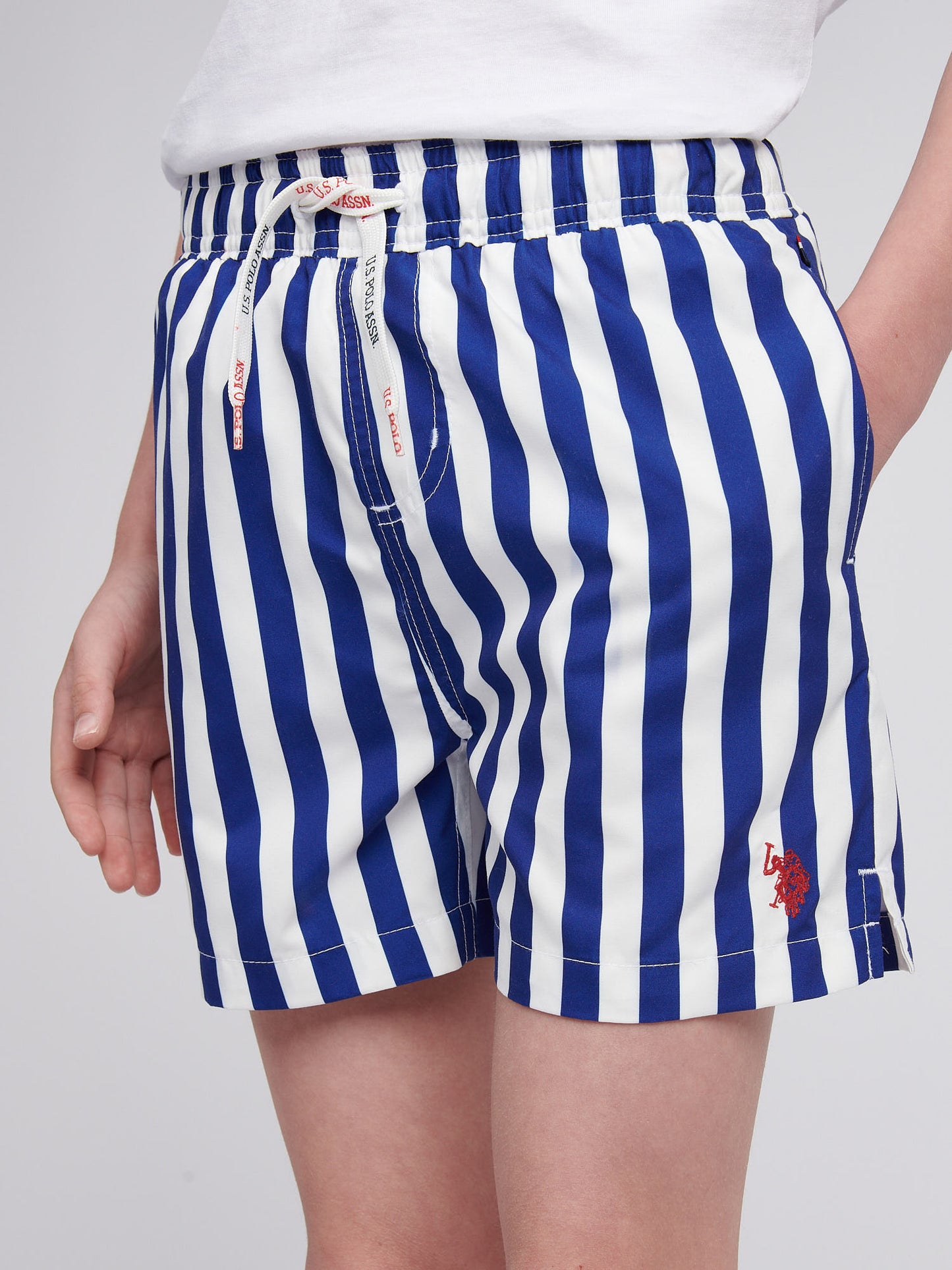 Make a splash in effortless style with the U.S. Polo Assn. Boys Stripe Swim Shorts. Featuring a timeless stripe design and heritage-inspired details, these shorts balance classic charm with everyday practicality. Pair them with a crisp tee and flip-flops for a relaxed look, perfect for poolside lounging or beach adventures.