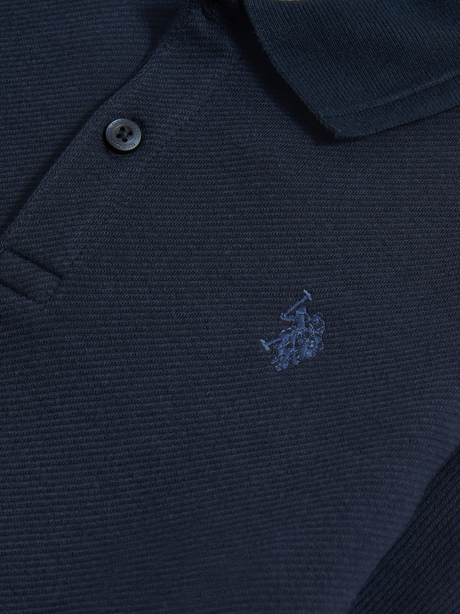 Boys Twill Texture Polo Shirt in Dark Sapphire Navy / Moonlight Blue DHM