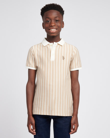 Boys Vertical Stripe Polo Shirt in Doeskin