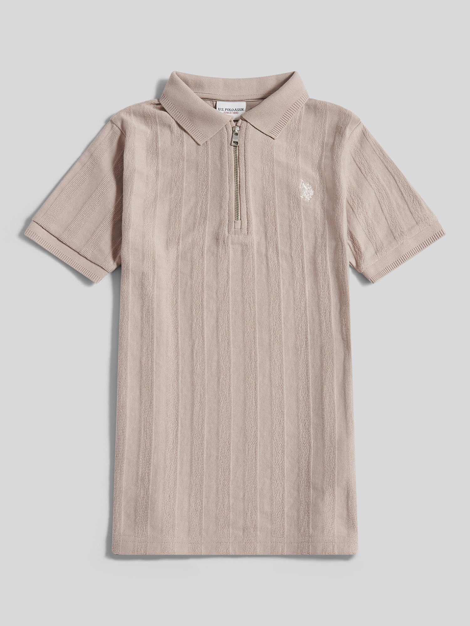 Boys Vertical Stripe Texture Zip Polo Shirt in Atmosphere