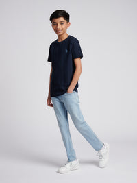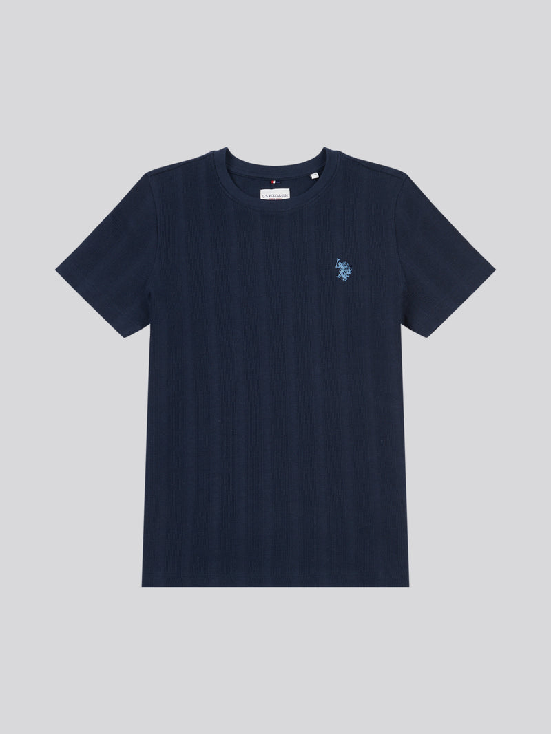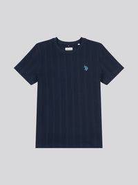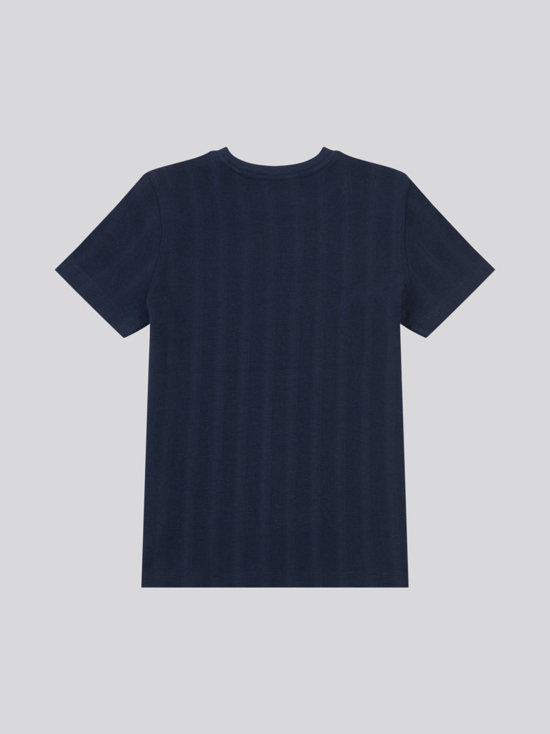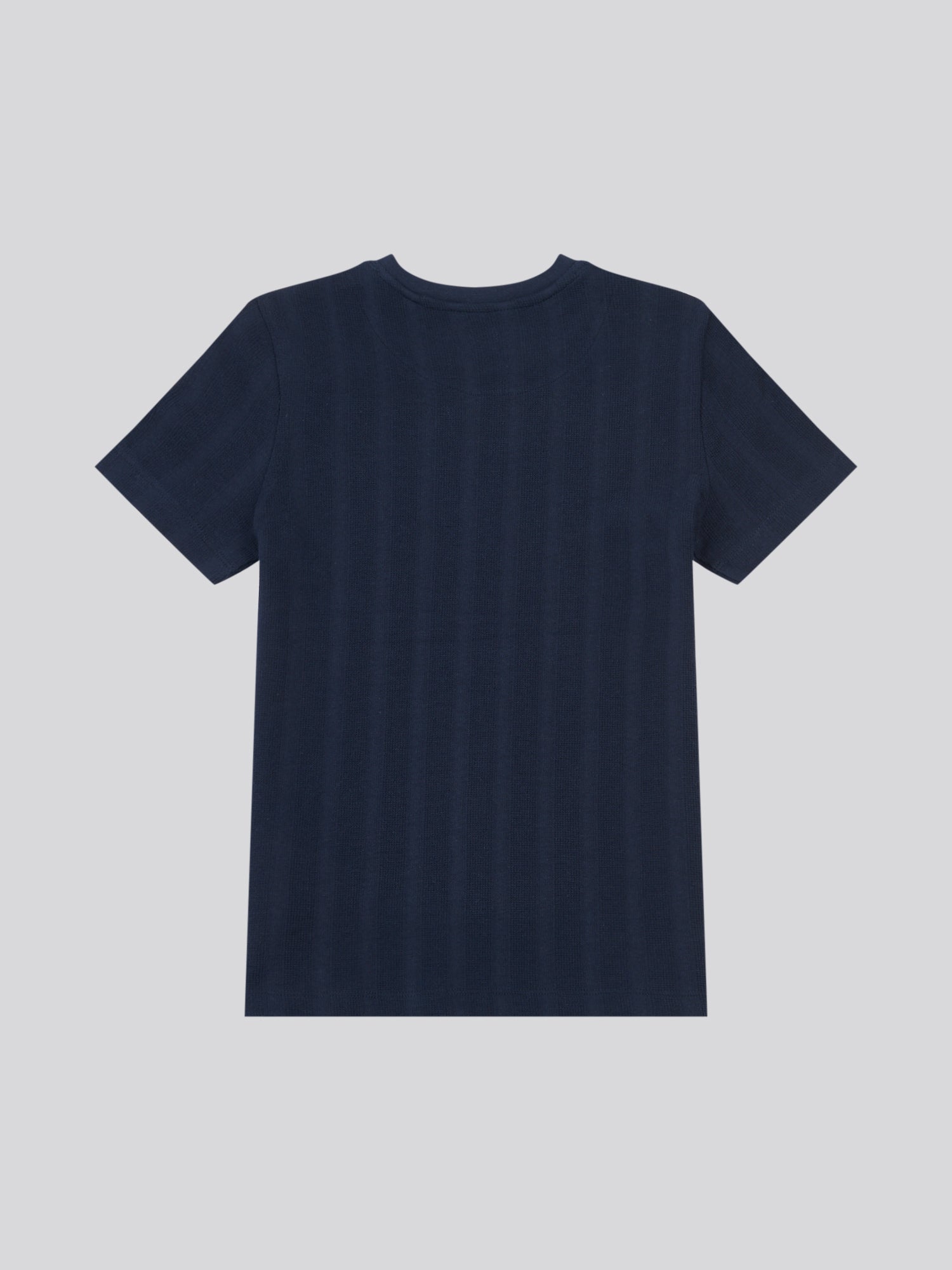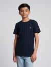 Boys Vertical Stripe Textured T-Shirt in Dark Sapphire Navy / Moonlight Blue DHM