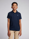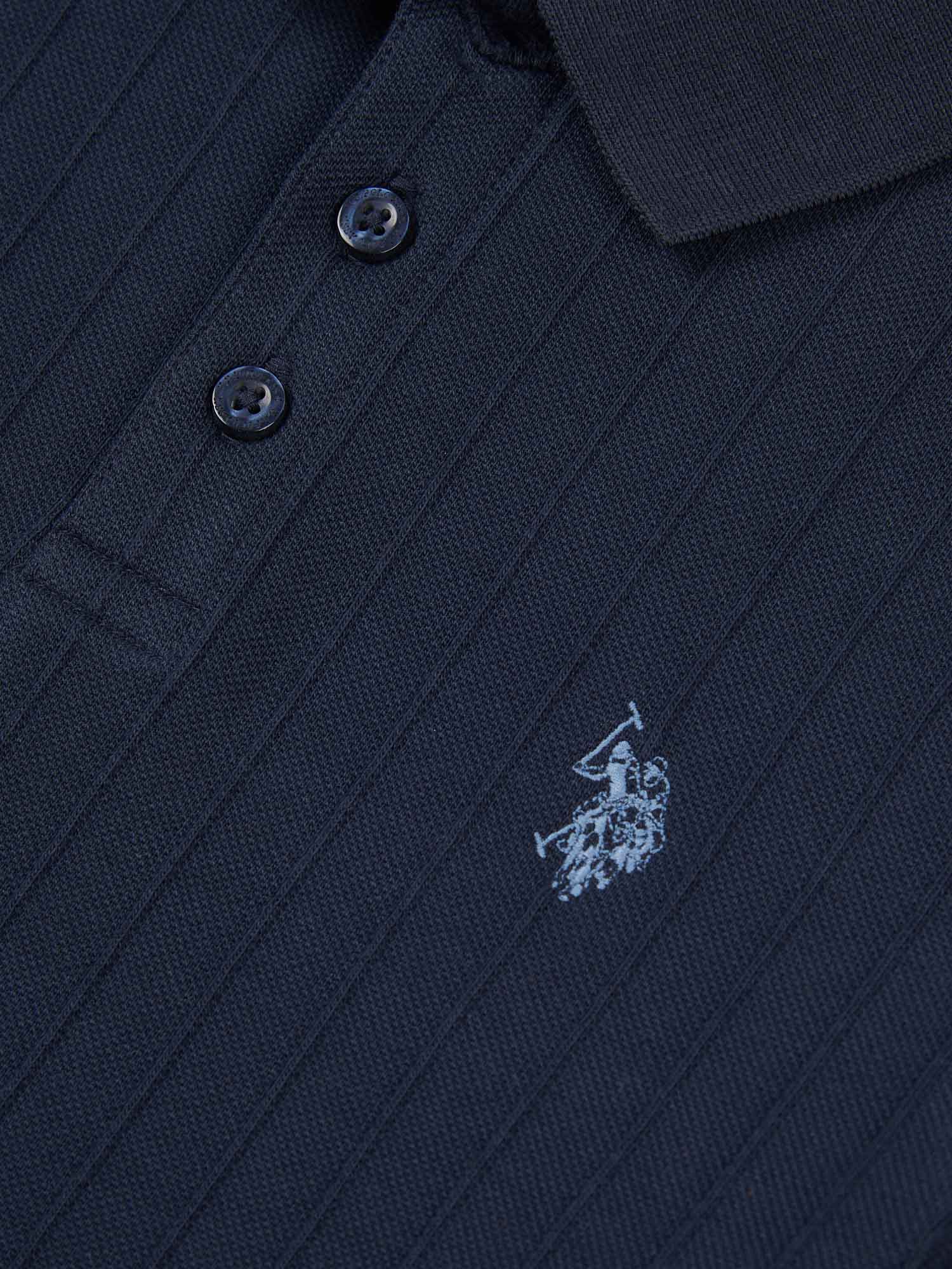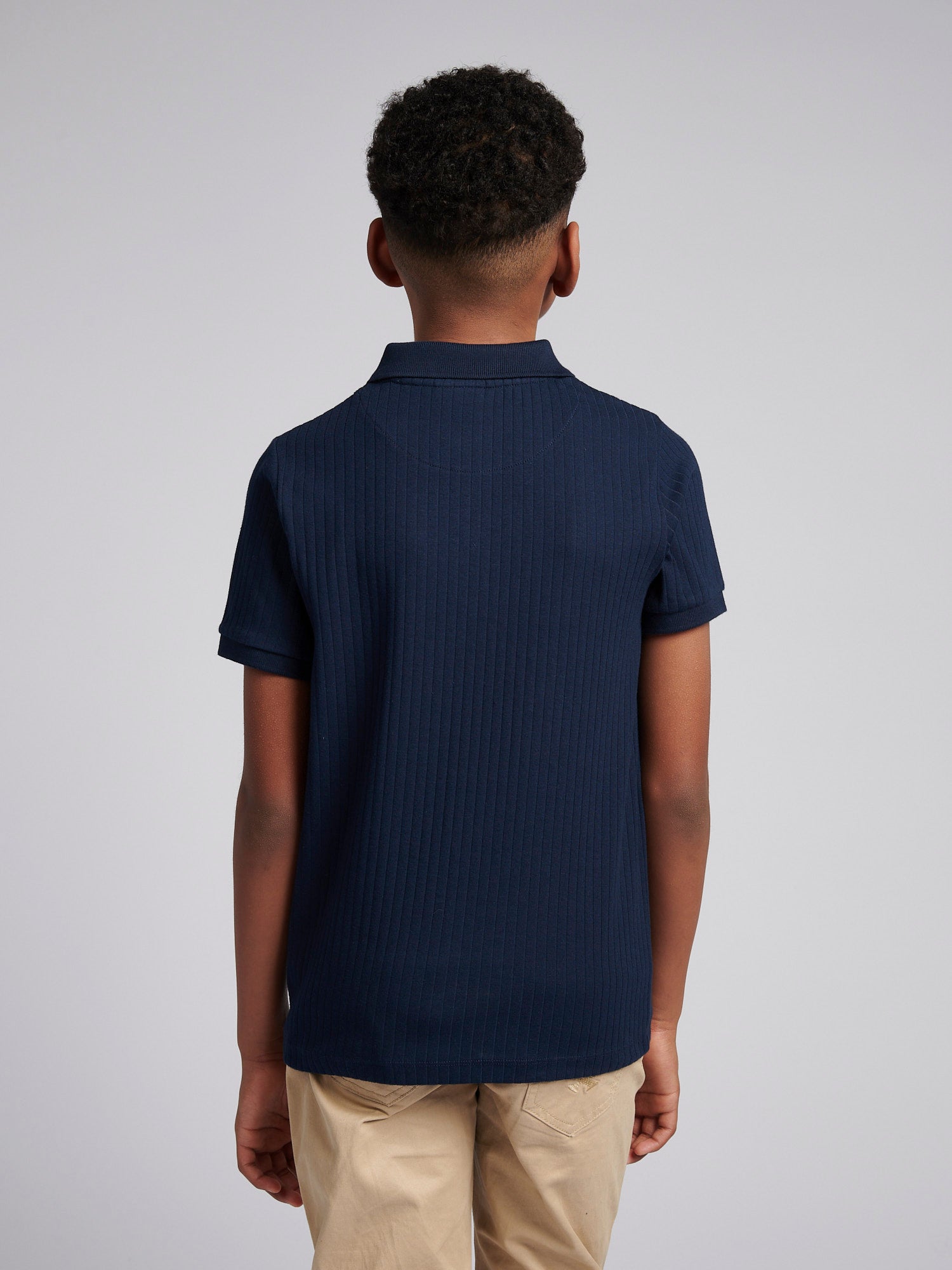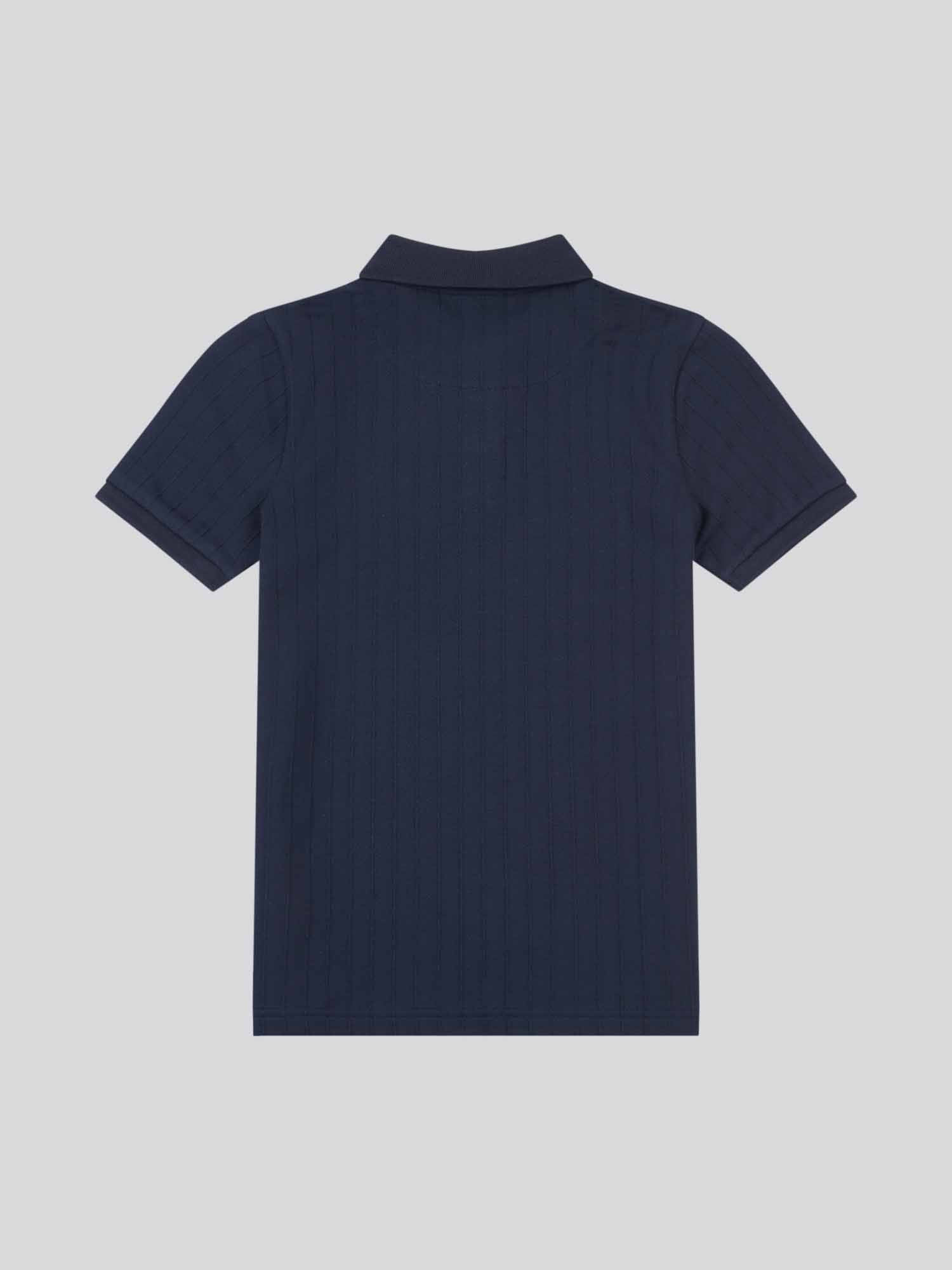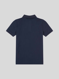 Boys Vertical Texture Polo Shirt in Dark Sapphire Navy / Moonlight Blue DHM