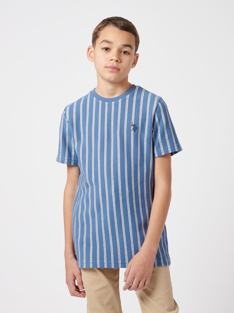 Boys Vertical Texture T-Shirt in Blue Horizon