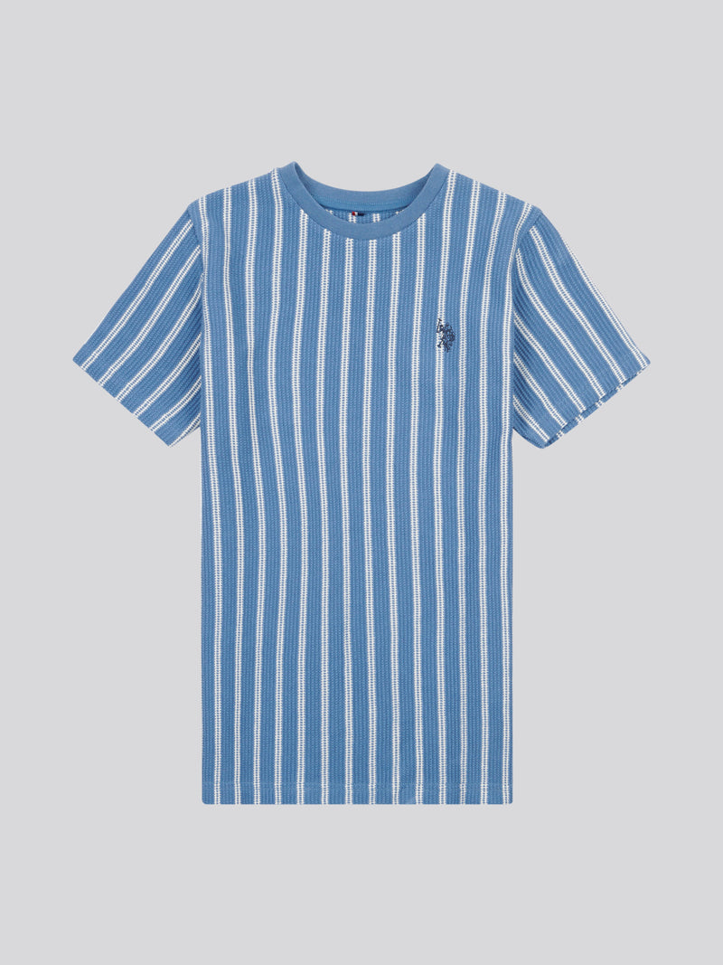 Effortlessly classic, this U.S. Polo Assn. T-shirt combines heritage styling with a modern vertical texture. Ideal for versatile, everyday looks, it pairs seamlessly with jeans or chinos for a laid-back, stylish ensemble.