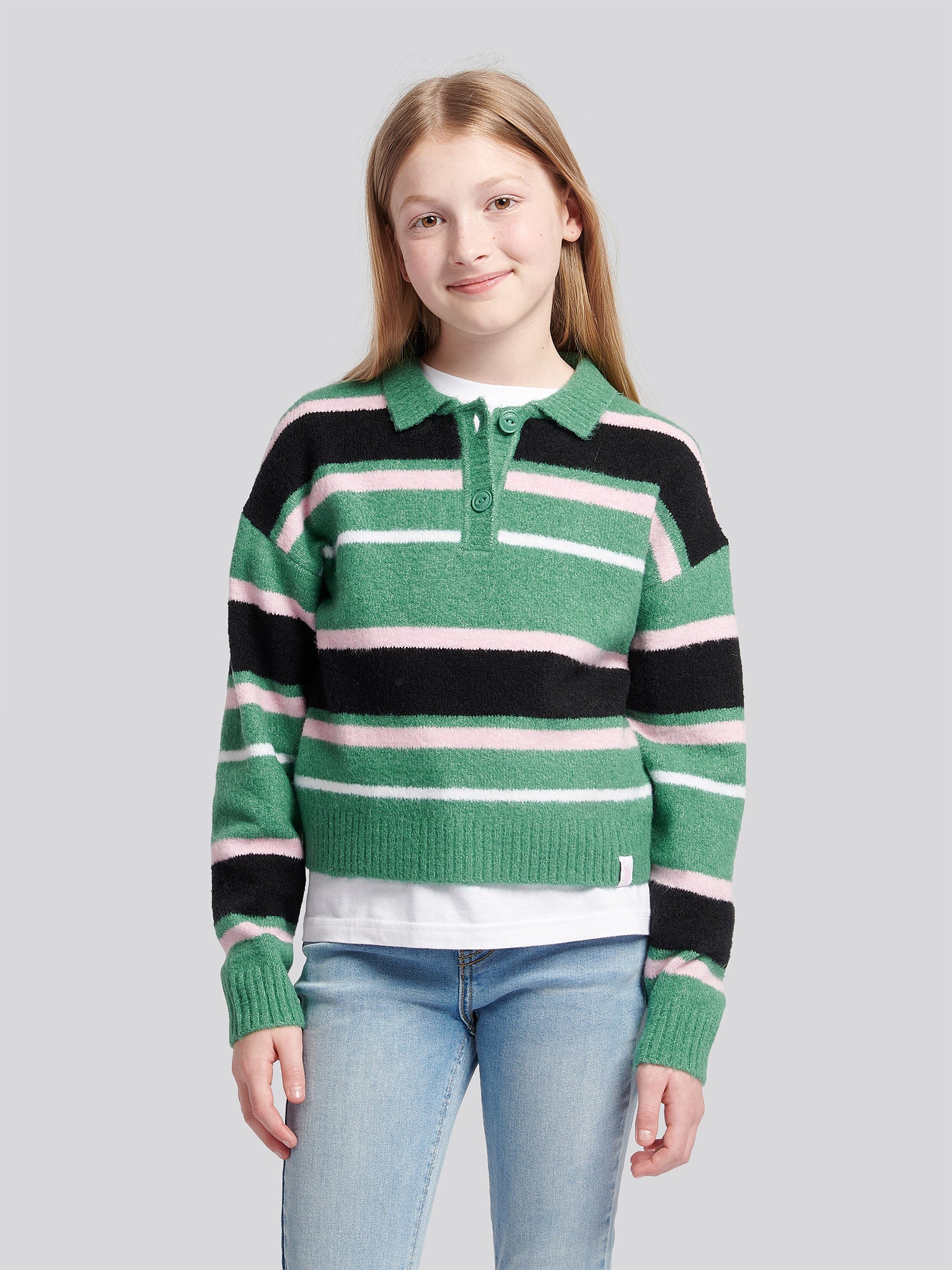 The U.S. Polo Assn. Girls Stripe Polo Jumper beautifully combines tradition with modern comfort. Crafted from the finest brushed yarns, this jumper offers a luxurious handfeel and lasting wearability. With its relaxed fit and multi-hued, yarn-dyed stripes, it adds a fresh touch to a classic design.