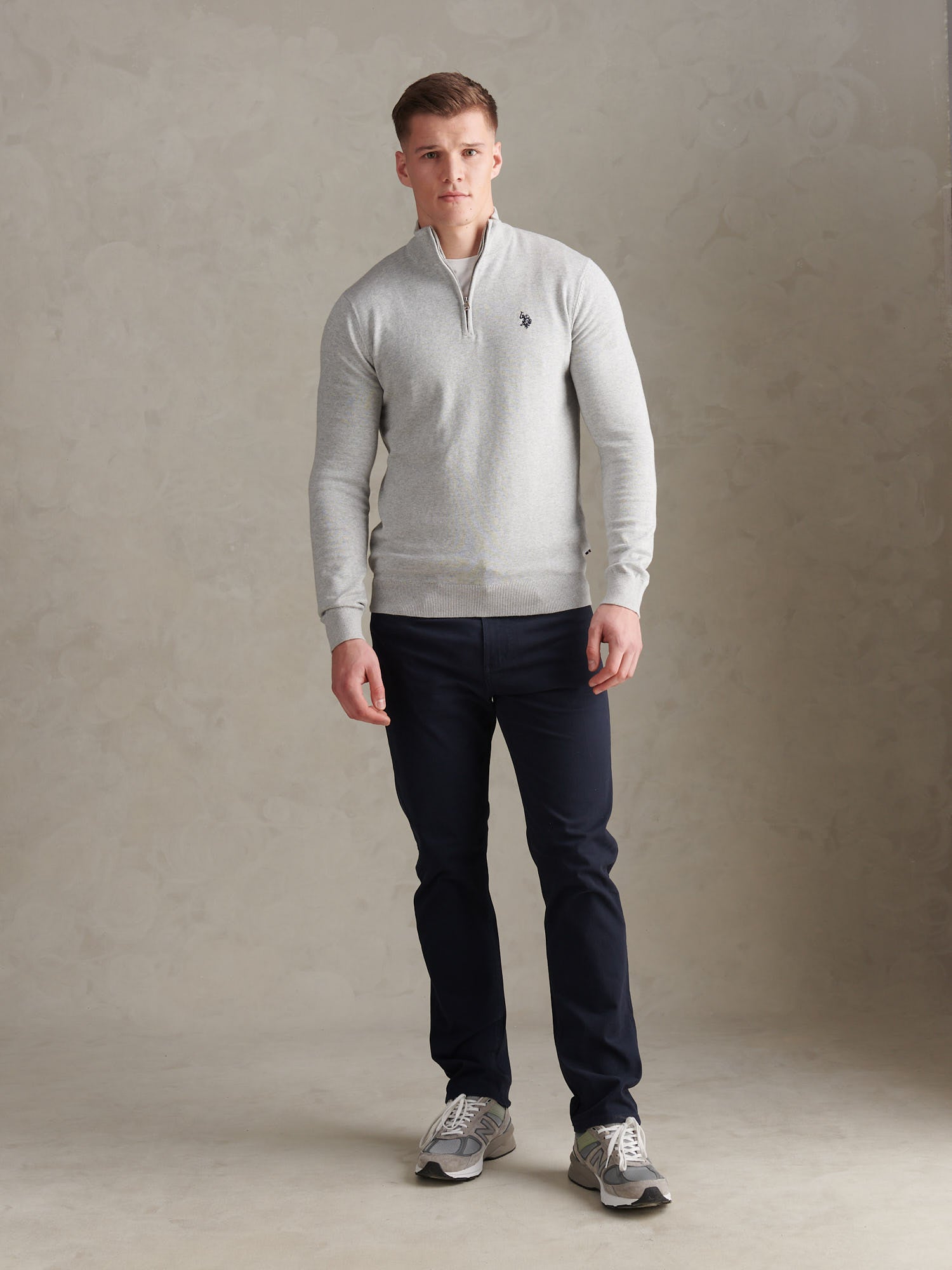 Designed with off-duty days and polished layering in mind, the Mens Cotton Quarter Zip Funnel Jumper brings U.S. Polo Assn.Õs knitwear heritage into an easy everyday staple. Crafted in true cotton knit with a clean funnel neckline and quarter zip, it balances relaxed comfort with a refined finish that works just as well over a shirt as it does thrown on with a favourite tee and chinos.
