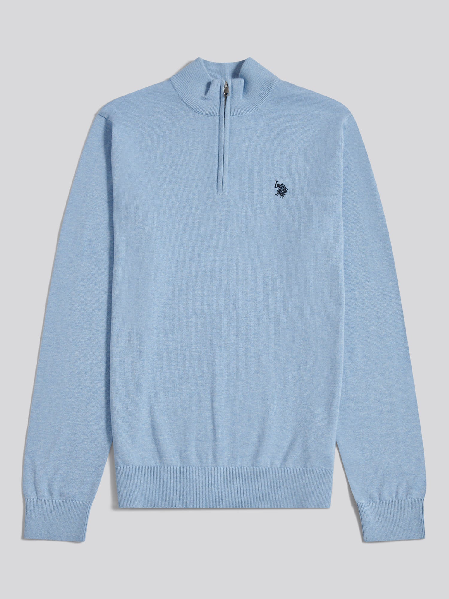 Mens Cotton Quarter Zip Funnel Jumper Parisian Blue Marl