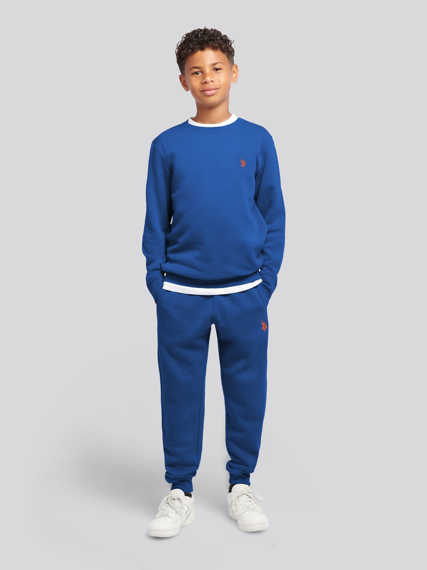 Elevate everyday dressing with the U.S. Polo Assn. Boys Double Horsemen Crew & Jogger Set. Featuring a classic sweatshirt and matching joggers, this coordinated look balances comfort and style with the brand’s signature embroidered Double Horsemen design. Team with clean white trainers for a heritage-inspired outfit that works from playdates to weekend outings.