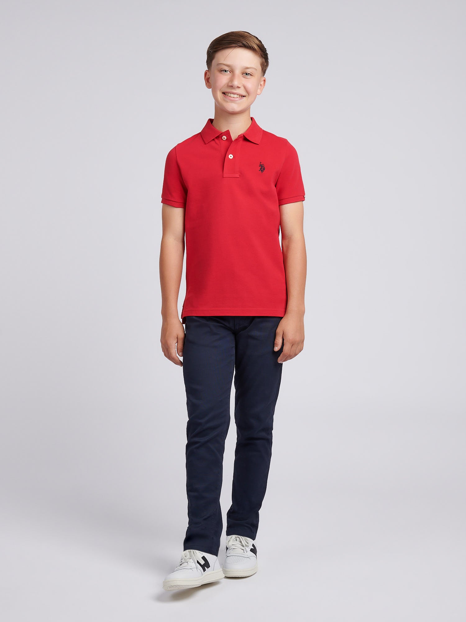 This classic Boys' Double Horsemen Polo Shirt from U.S. Polo Assn. captures the timeless essence of polo with its refined style and subtle detailing. Crafted to keep your young one comfortable and looking smart for any occasion. Wear it with jeans or chinos for a polished, yet relaxed look.