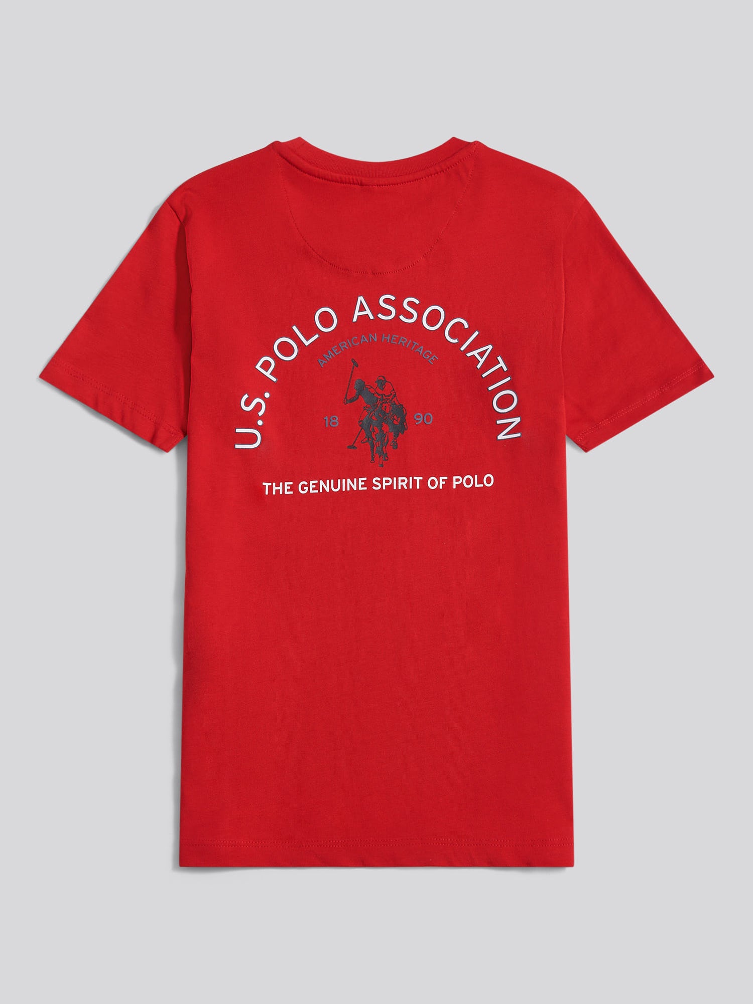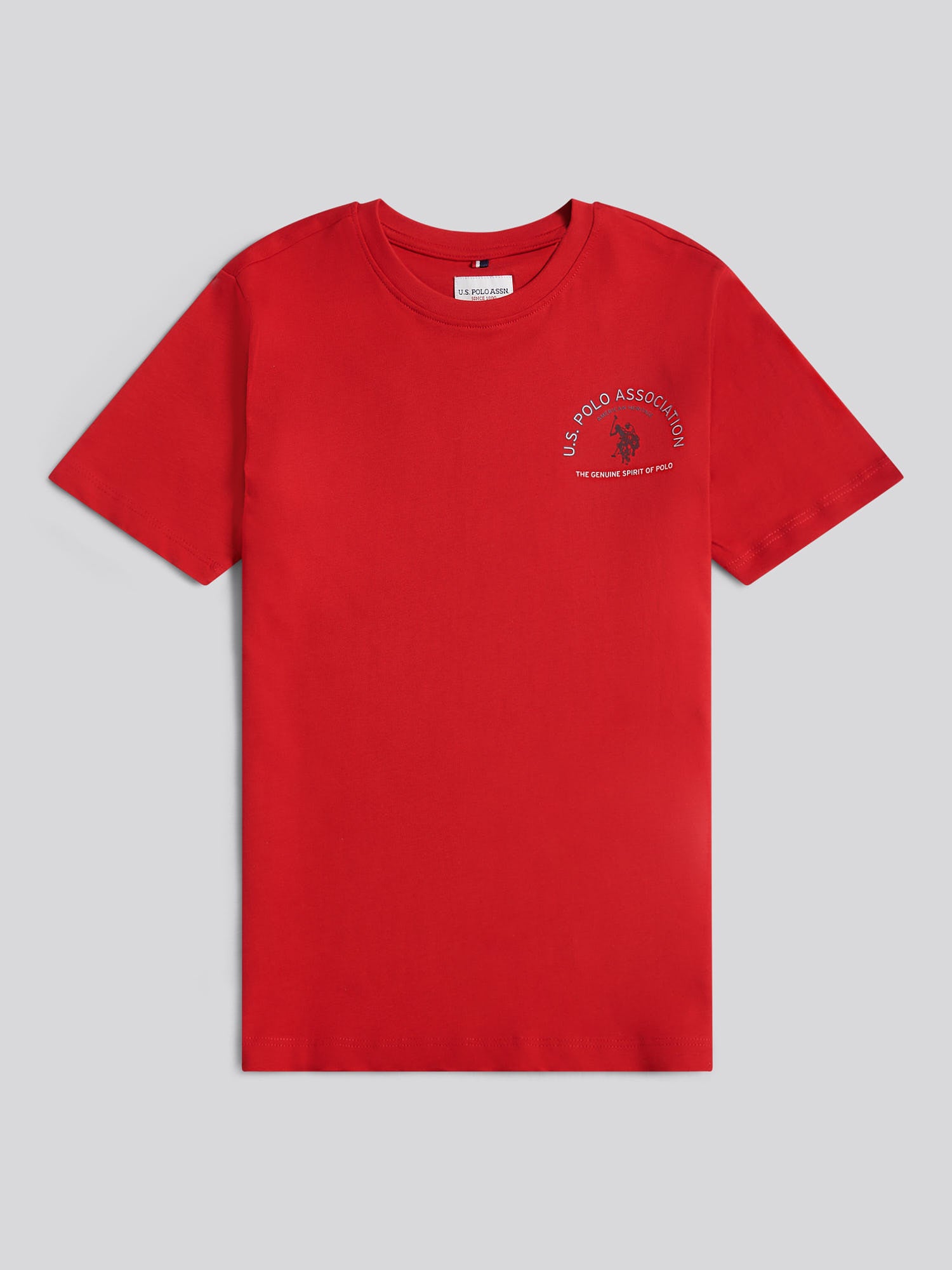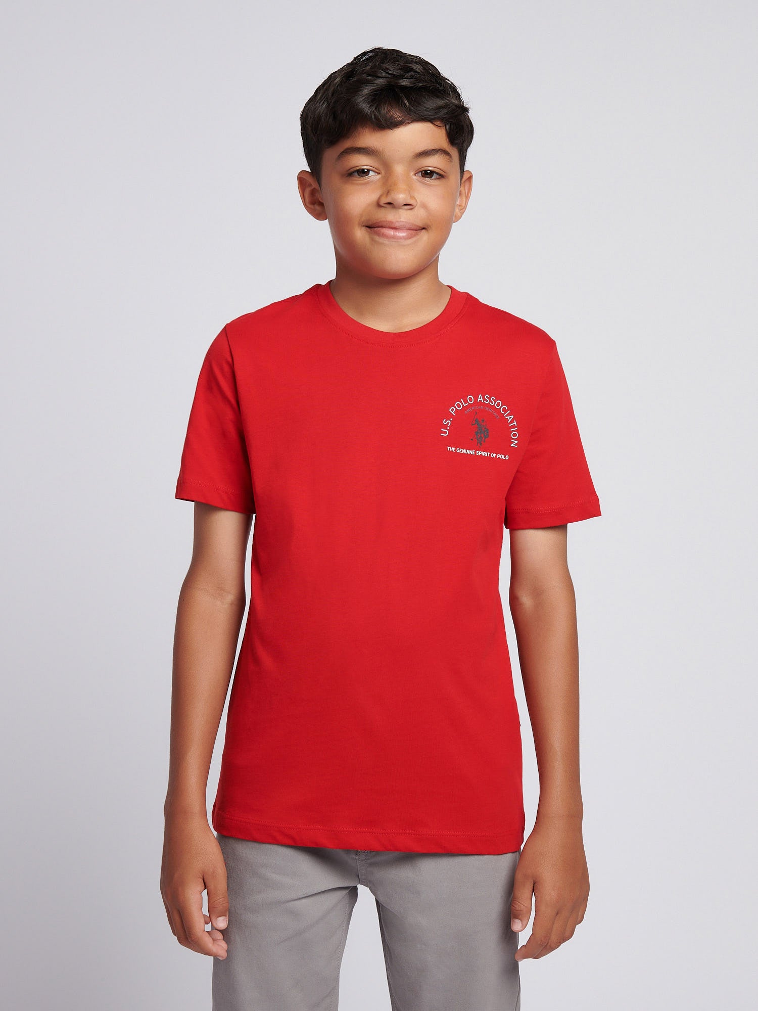 Boys Front Back Print Graphic T-Shirt in Haute Red