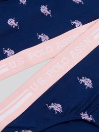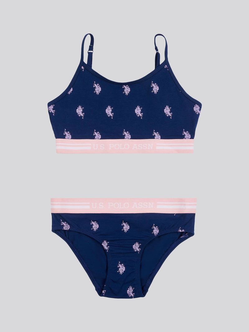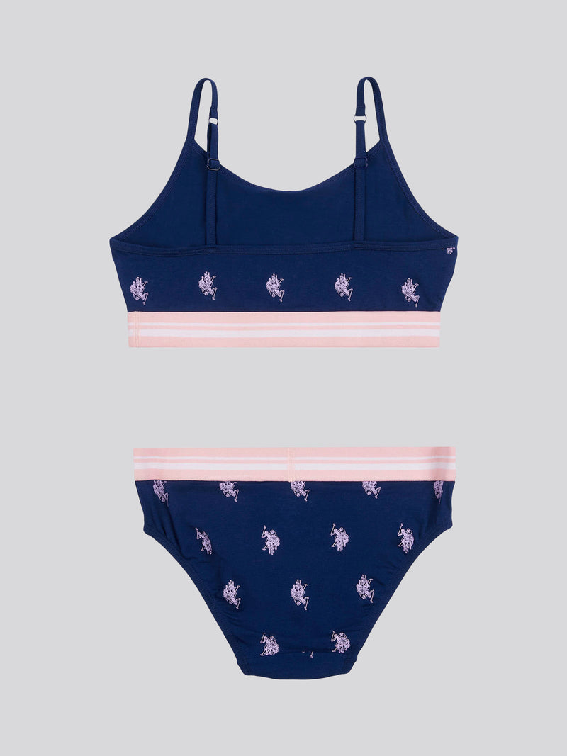 The U.S. Polo Assn. Girls Bralette and Bikini Brief Underwear Set is carefully crafted in a soft cotton blend with an elasticated waist and striped hem. The set is finished with the beautifully embroidered multicoloured double horsemen for the USPA stamp of authenticity and signature branding to the waistband.