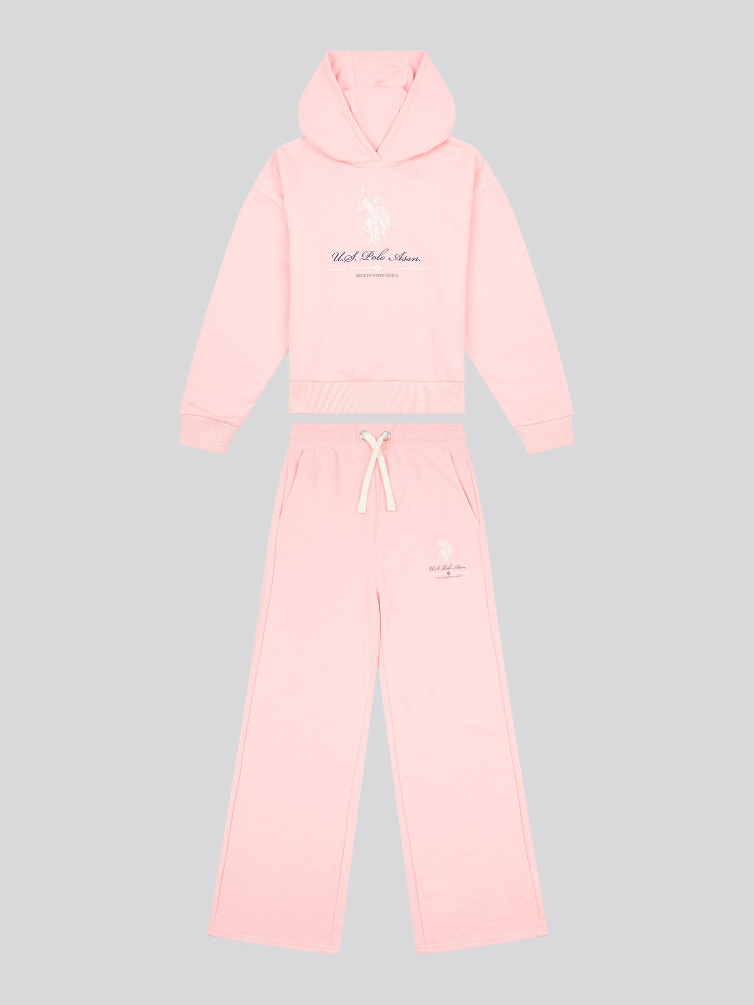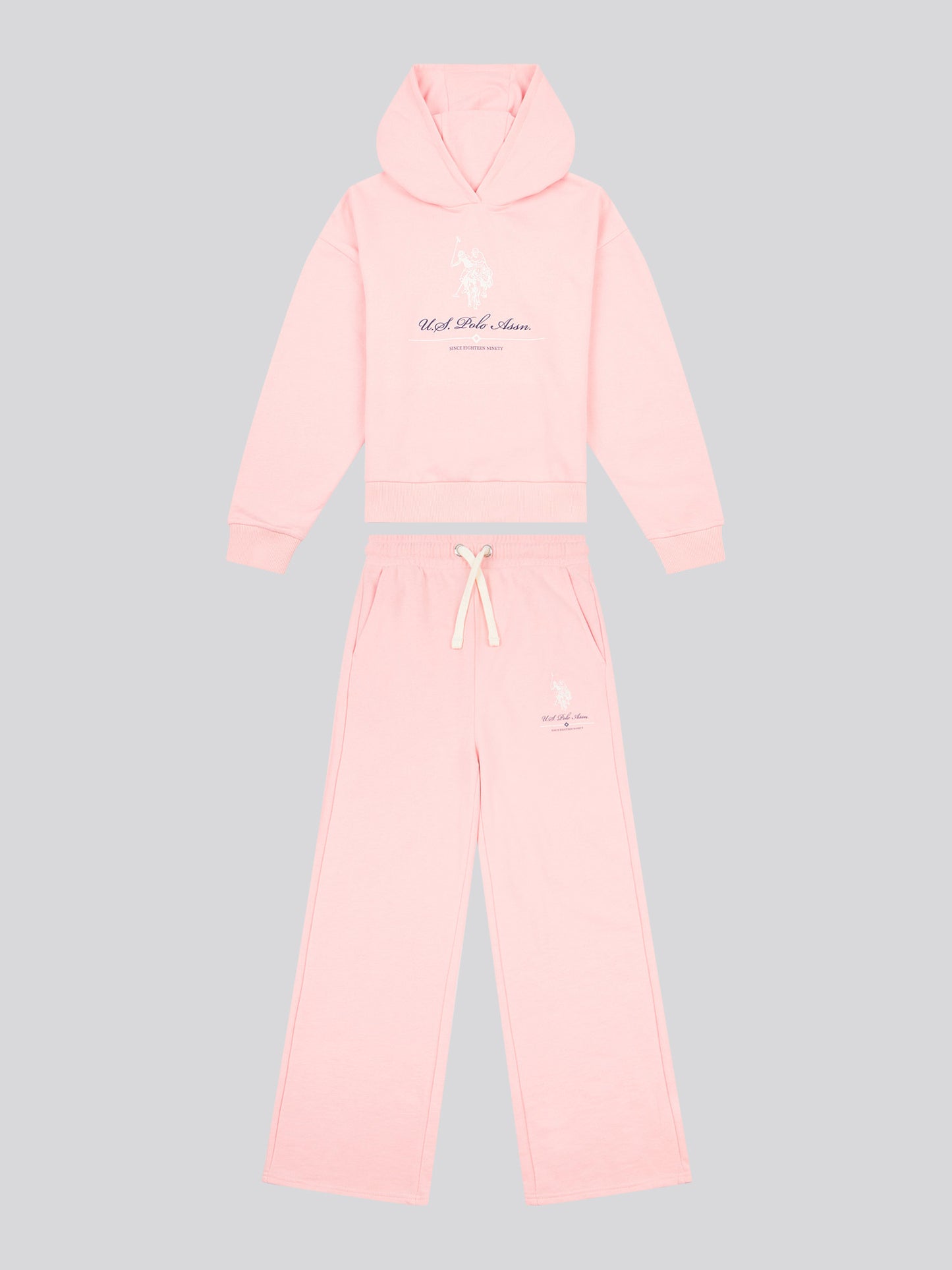 Girls Brushed Back Hoodie & Jogger Set in Crystal Rose