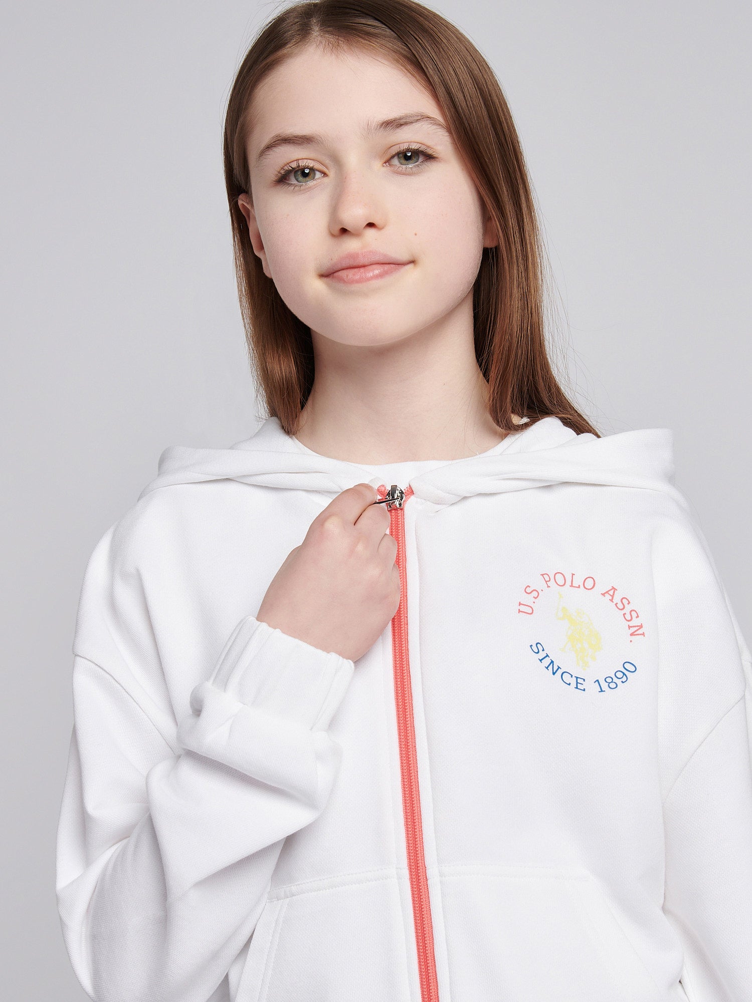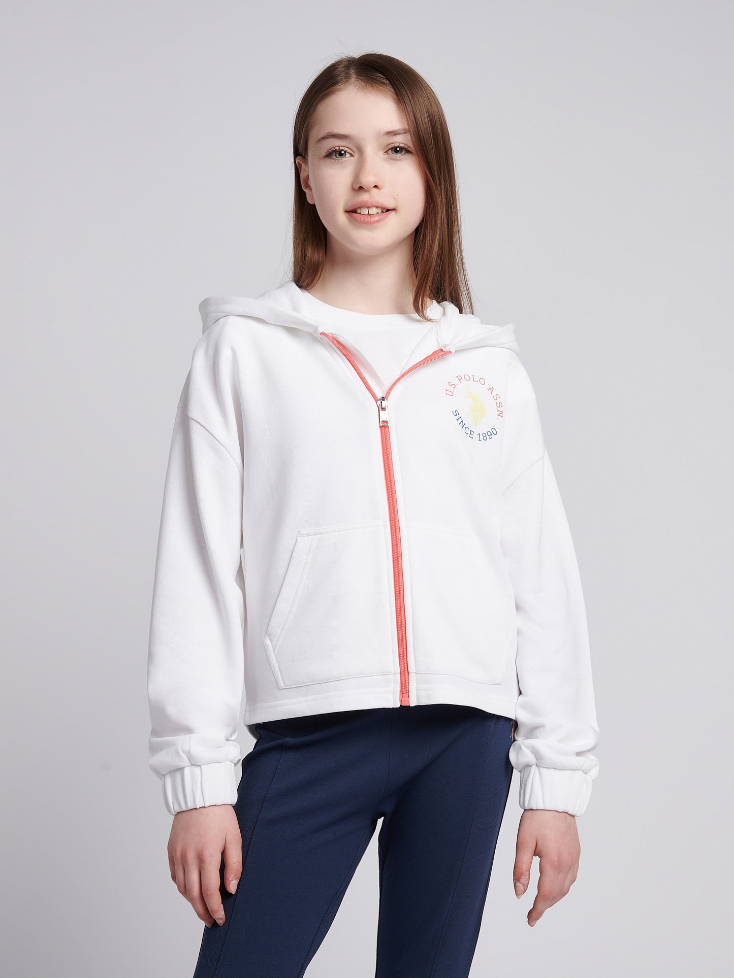 Elevate her everyday look with this stylish zip-through sweat from U.S. Polo Assn., combining comfort and charm in equal measure. Designed with a soft loopback terry fabric and an eye-catching plastisol chest graphic, it’s perfect for layering over her favourite tees for a sporty yet polished finish. Pair with joggers or jeans for a versatile outfit, ideal for both relaxed weekends and active days out.