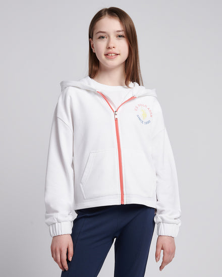 Girls Graphic Zip Through Sweat in Bright White