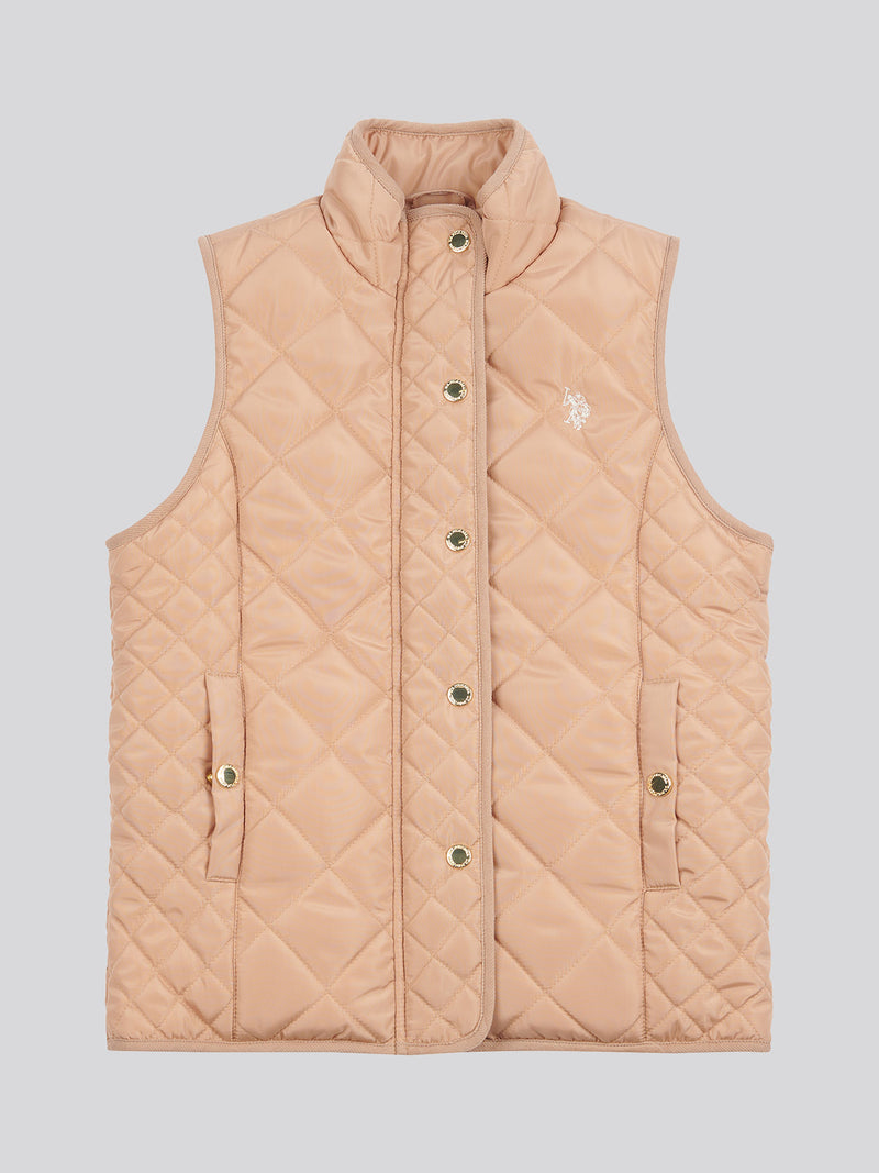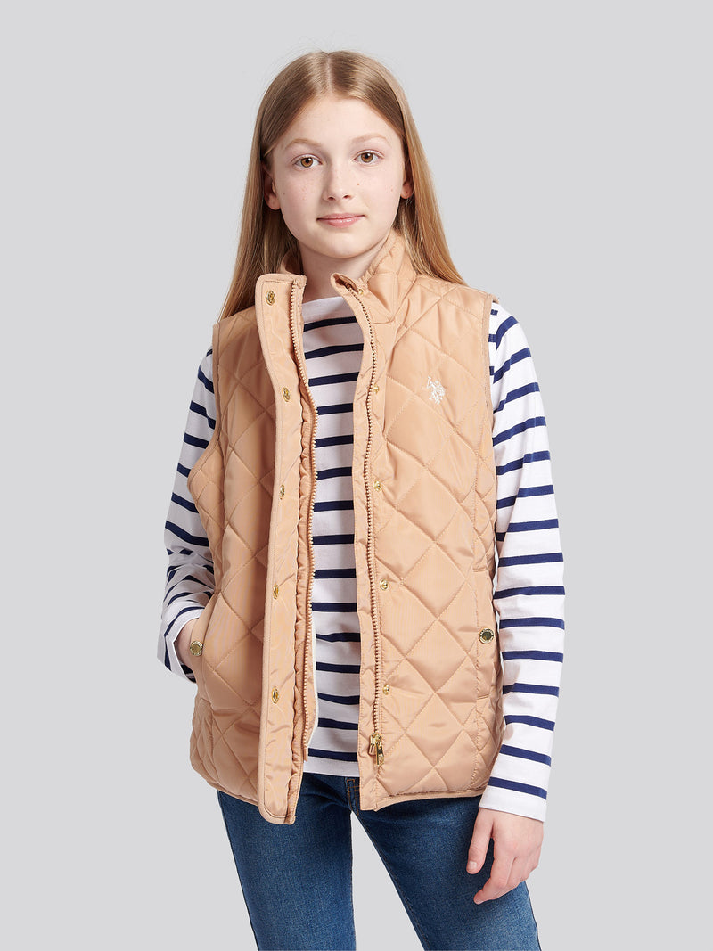 Girls Lightweight Quilted Gilet in Cuban Sand