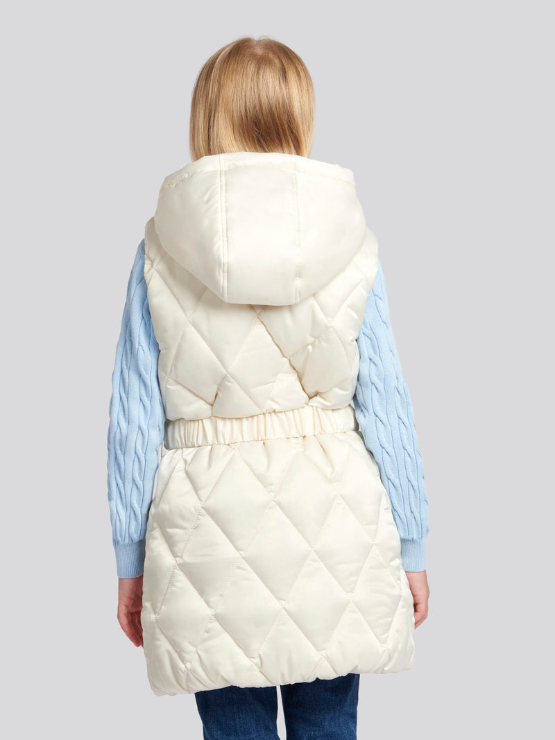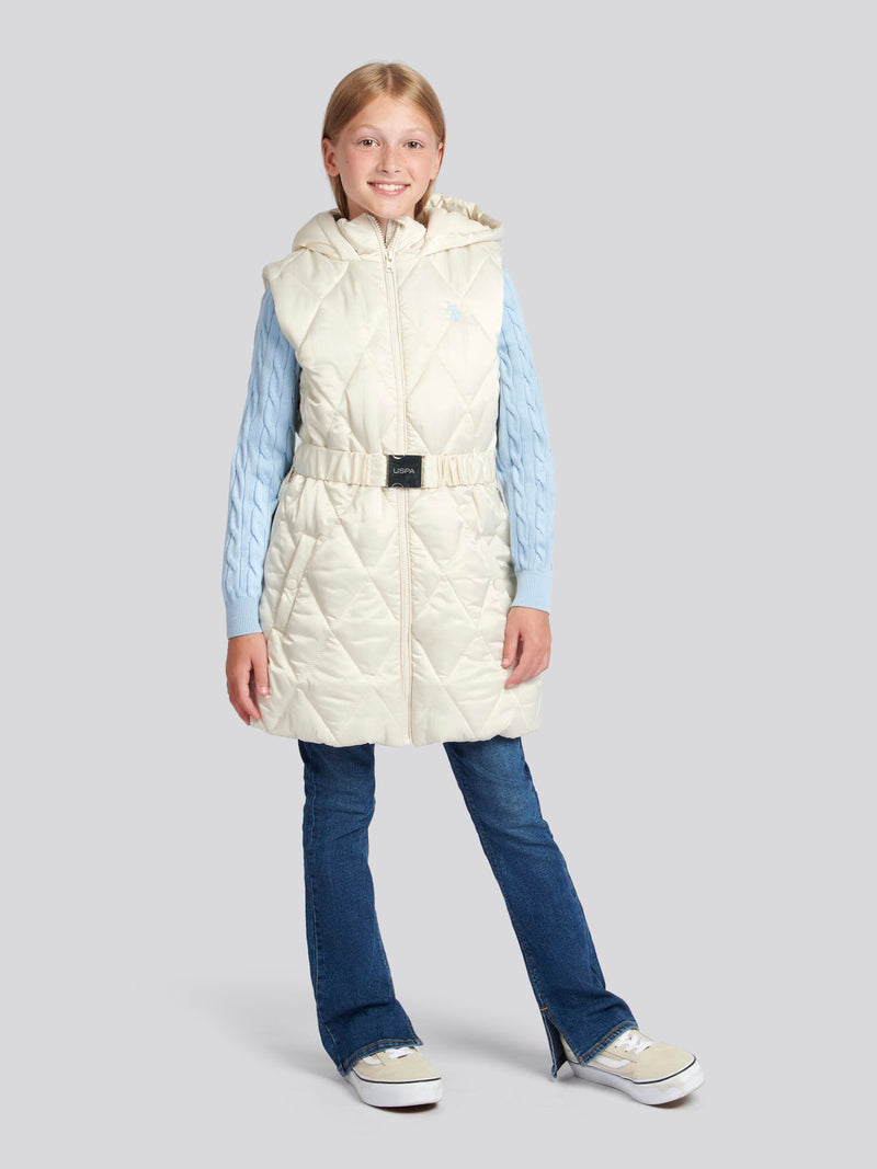 Girls Longline Puffer Gilet in Turtle Dove Girls Longline Puffer Gilet in Turtle Dove