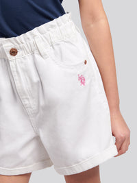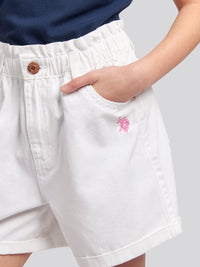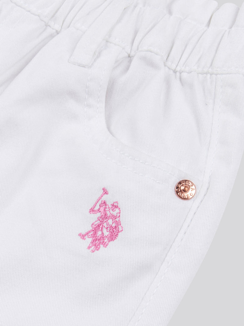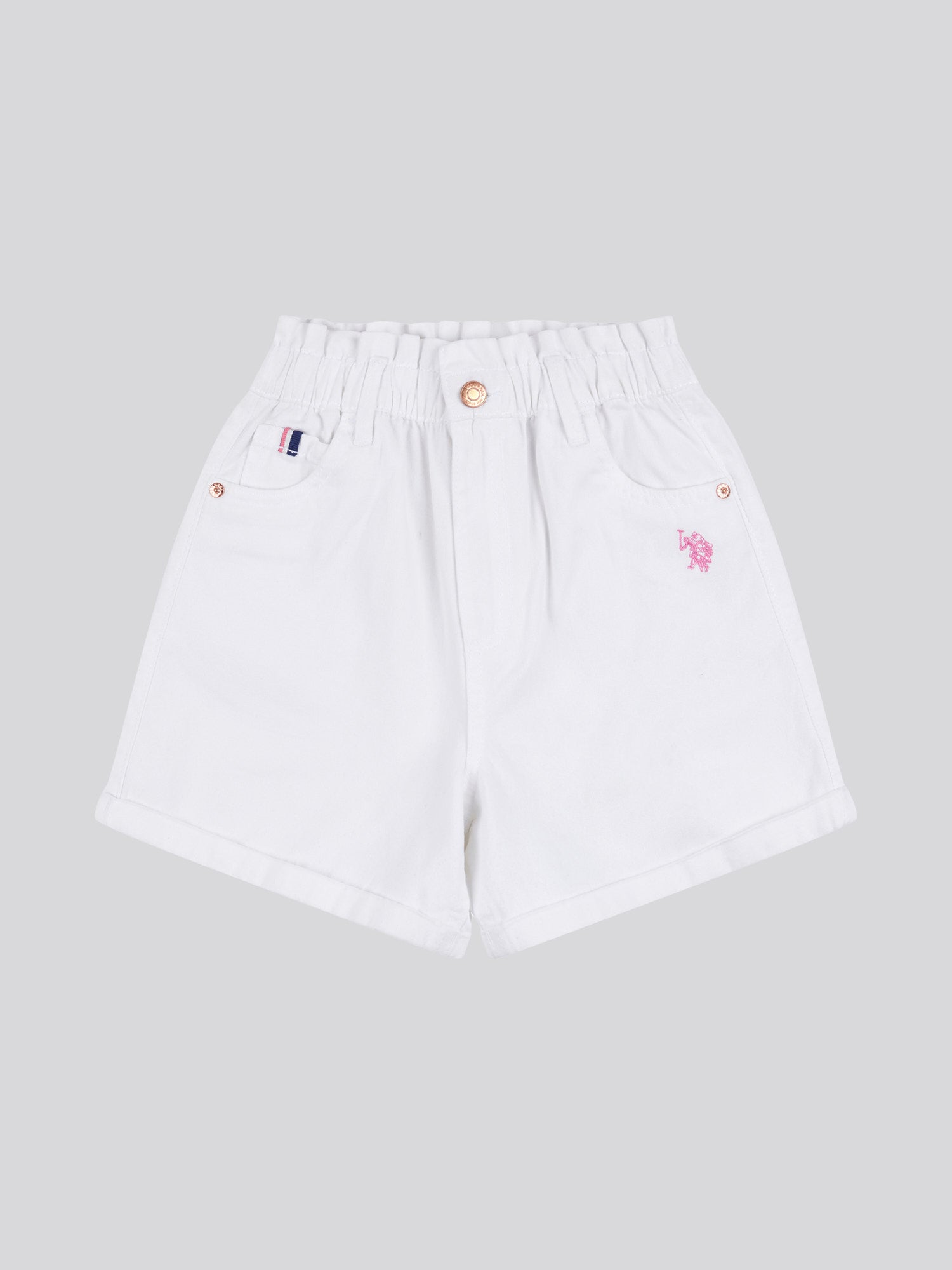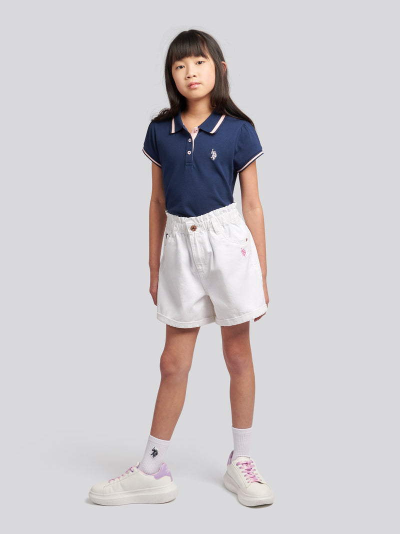 Move with style and ease thanks to the U.S. Polo Assn. Girls Paperbag Waist Twill Shorts.