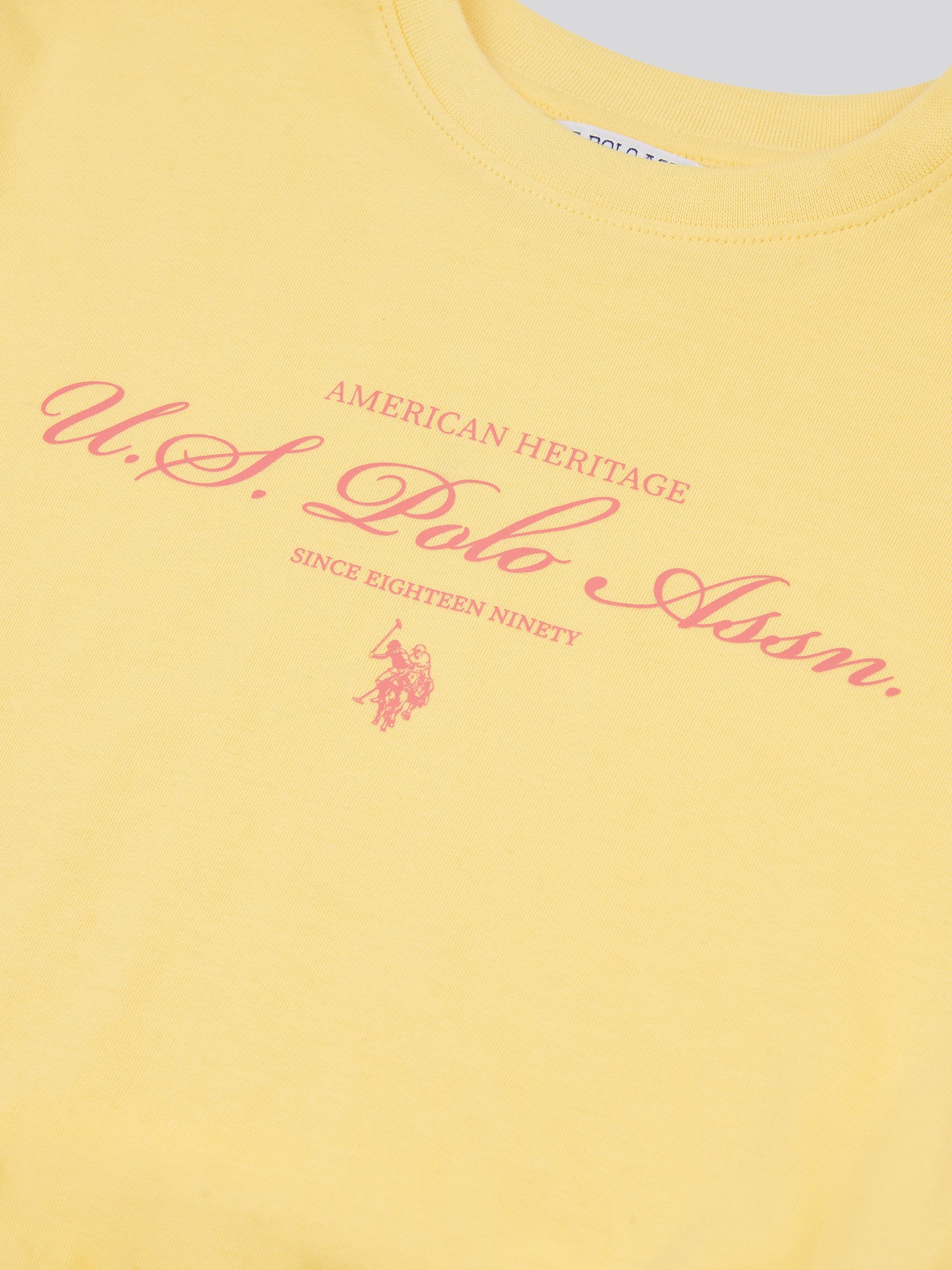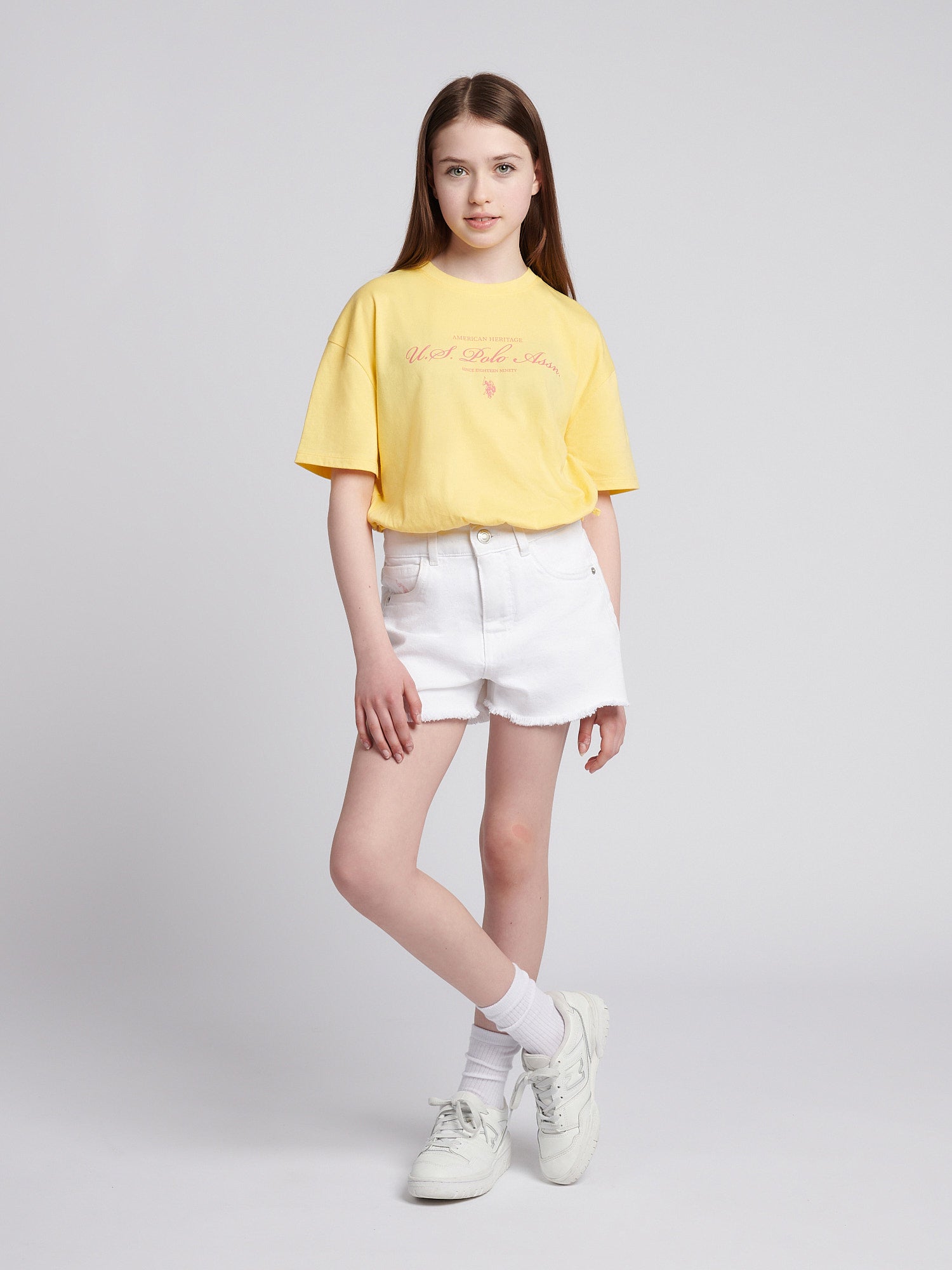 Girls Rounded Elastic Hem Graphic T-Shirt in Sunshine