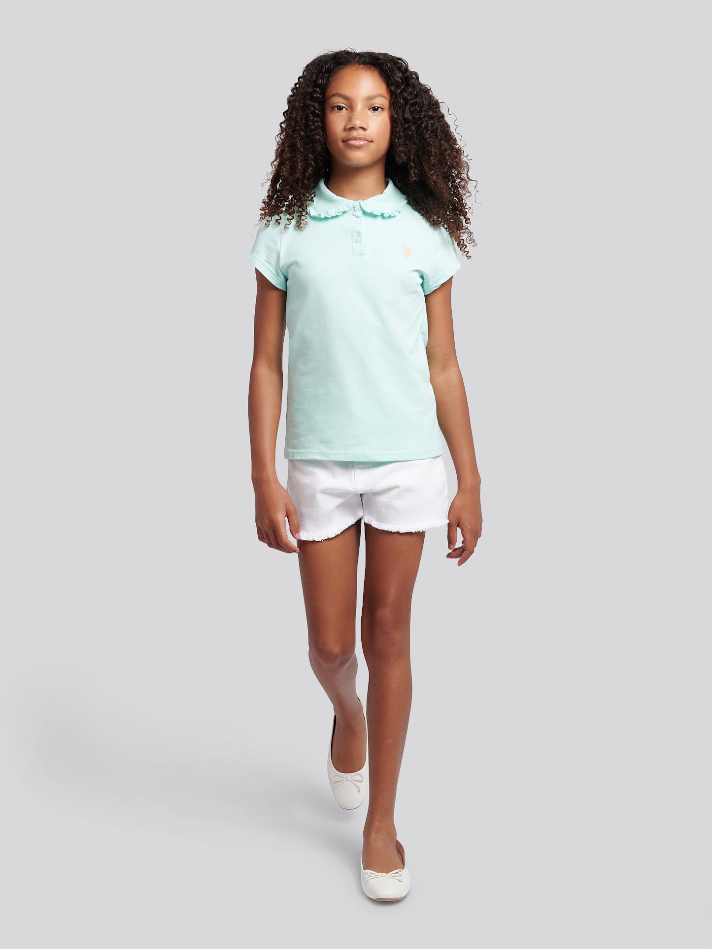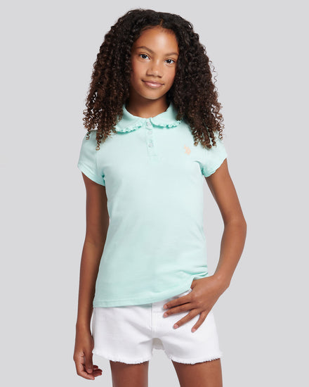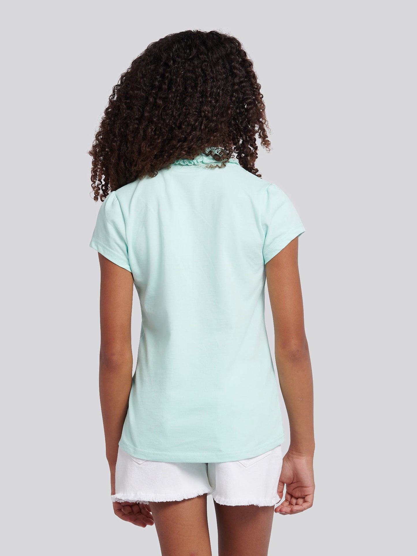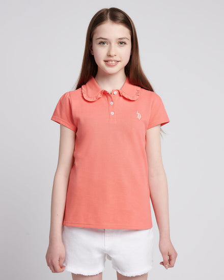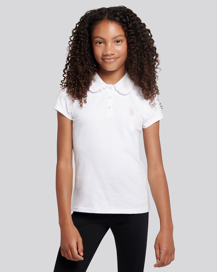 Introduce her to timeless charm with this scallop collar polo shirt, a perfect blend of classic elegance and modern flair. Crafted to reflect the spirit of polo, its delicate scallop detailing and premium fabric ensure she stays effortlessly stylish for every occasion. Pair with a denim skirt and sandals for a chic summer look or tailored trousers for a polished finish.