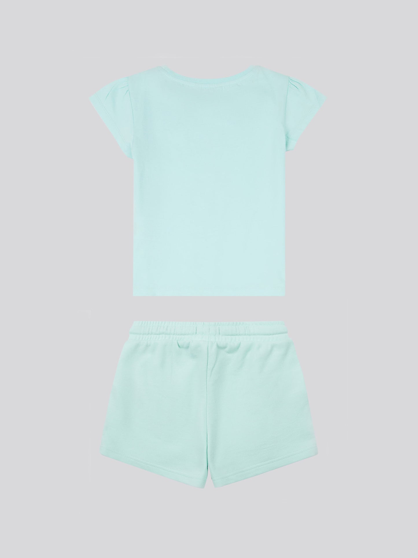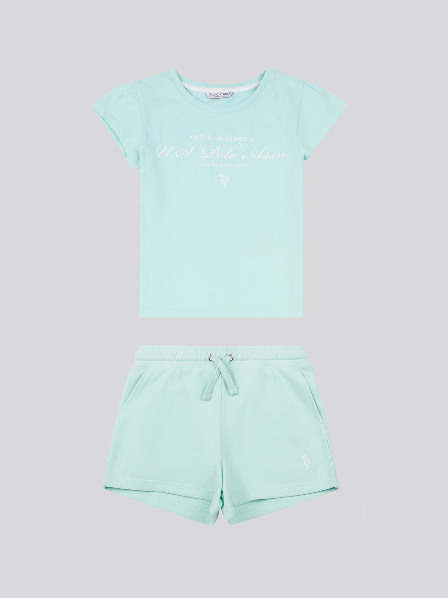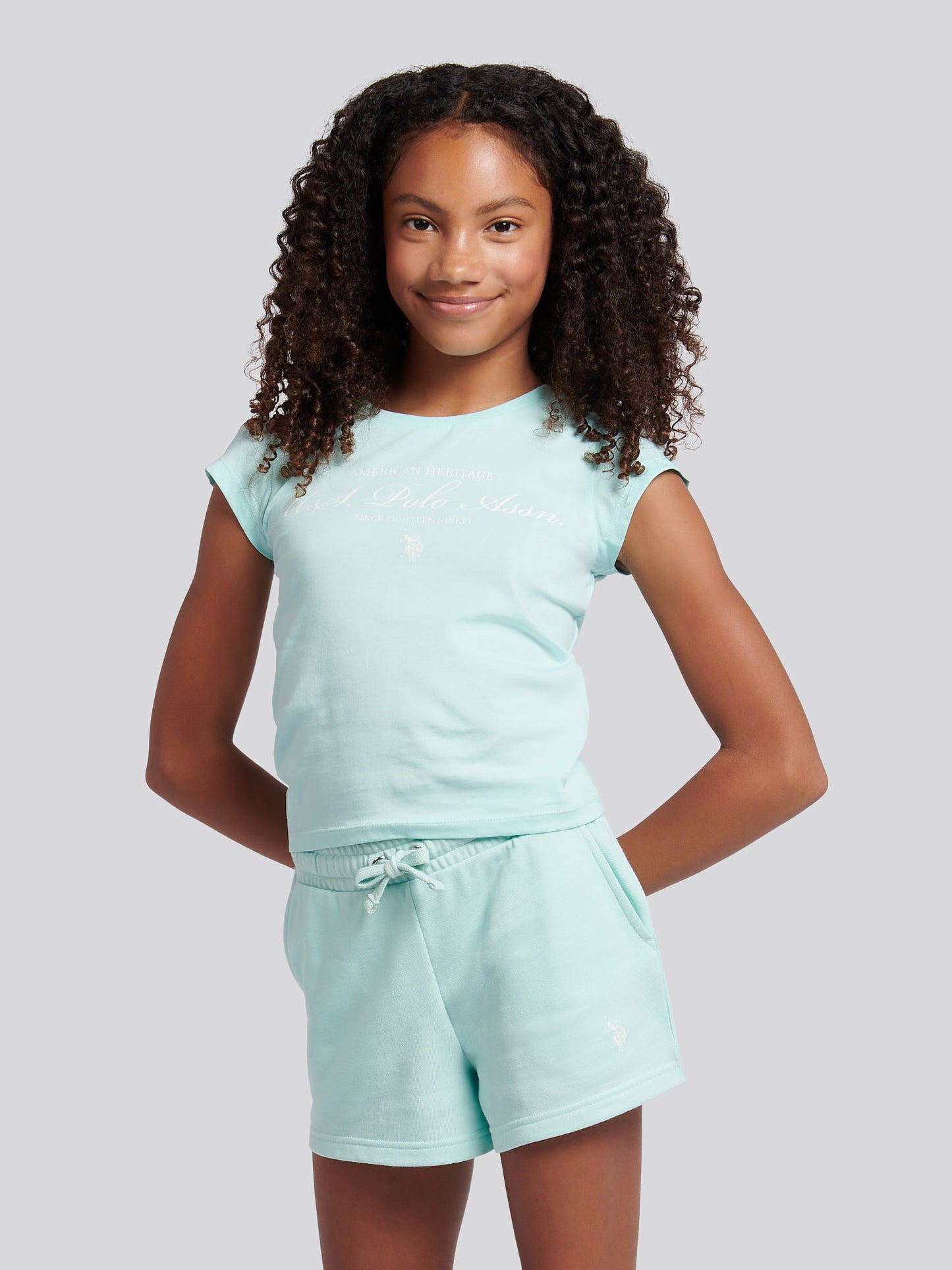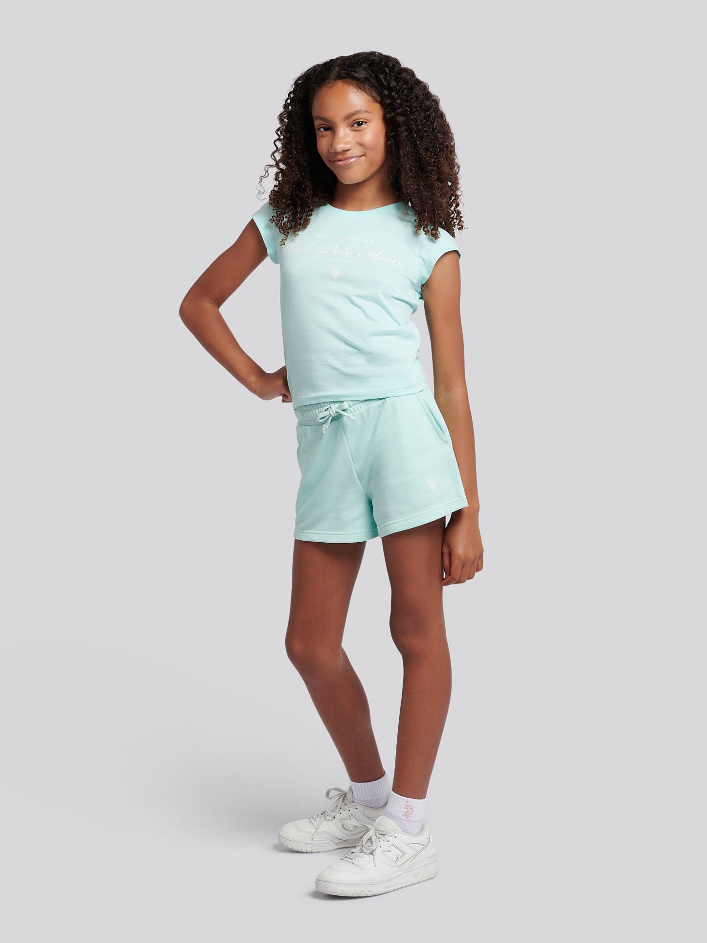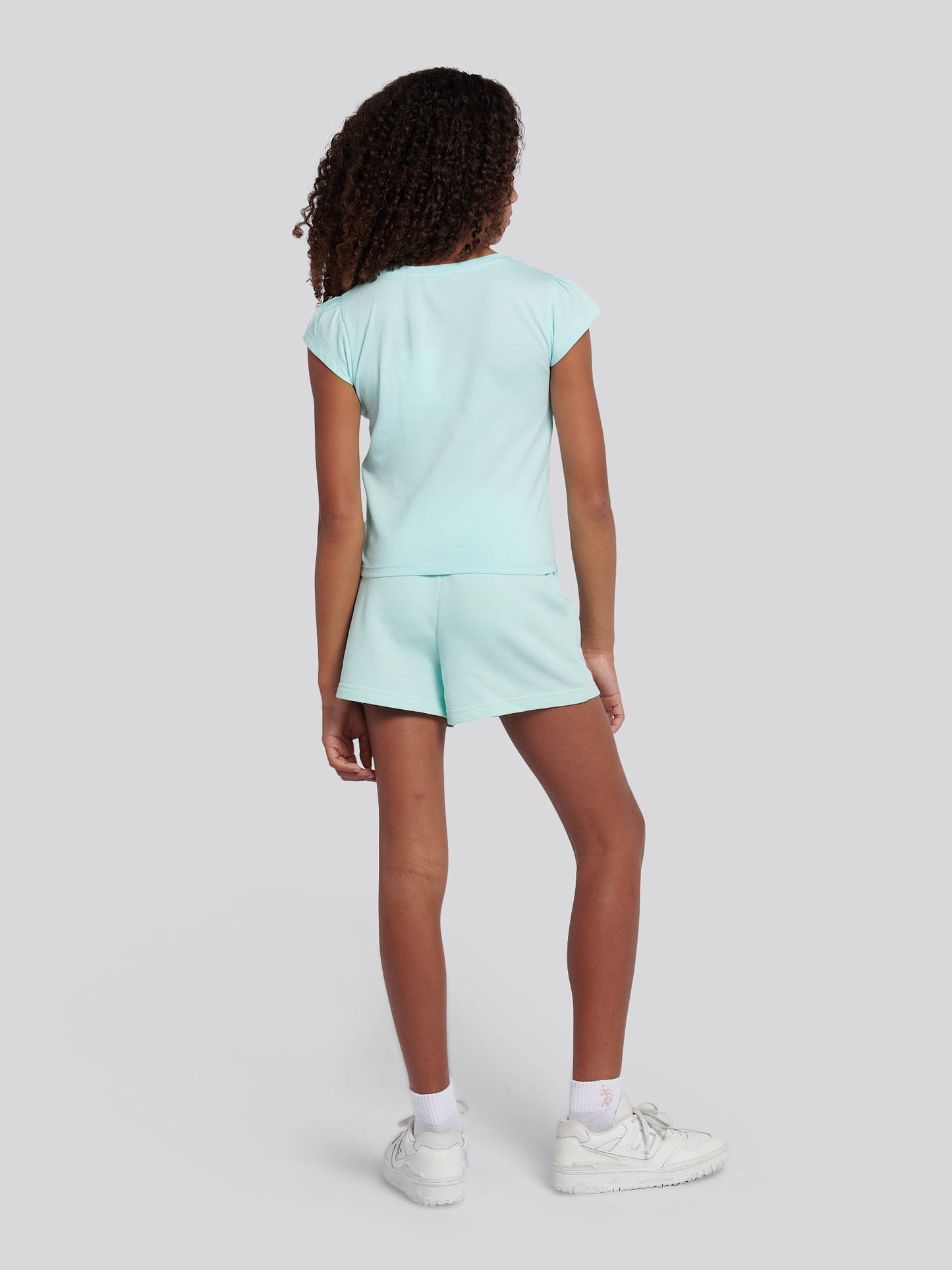 Girls Script Graphic T-Shirt & Sweat Short Set in Blue Light