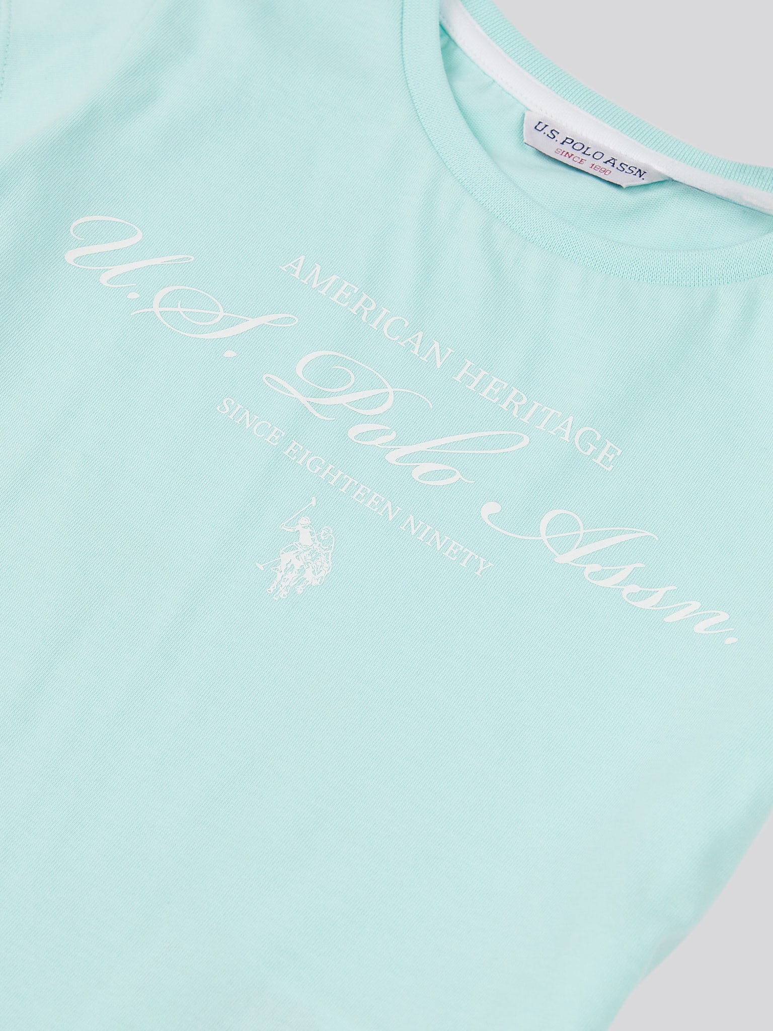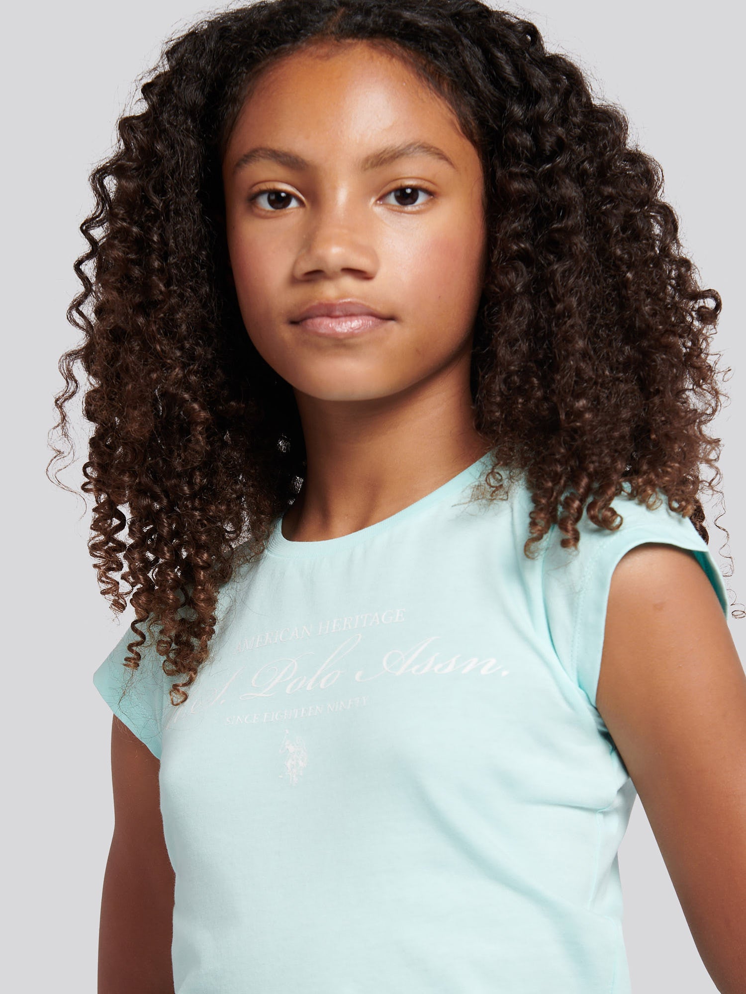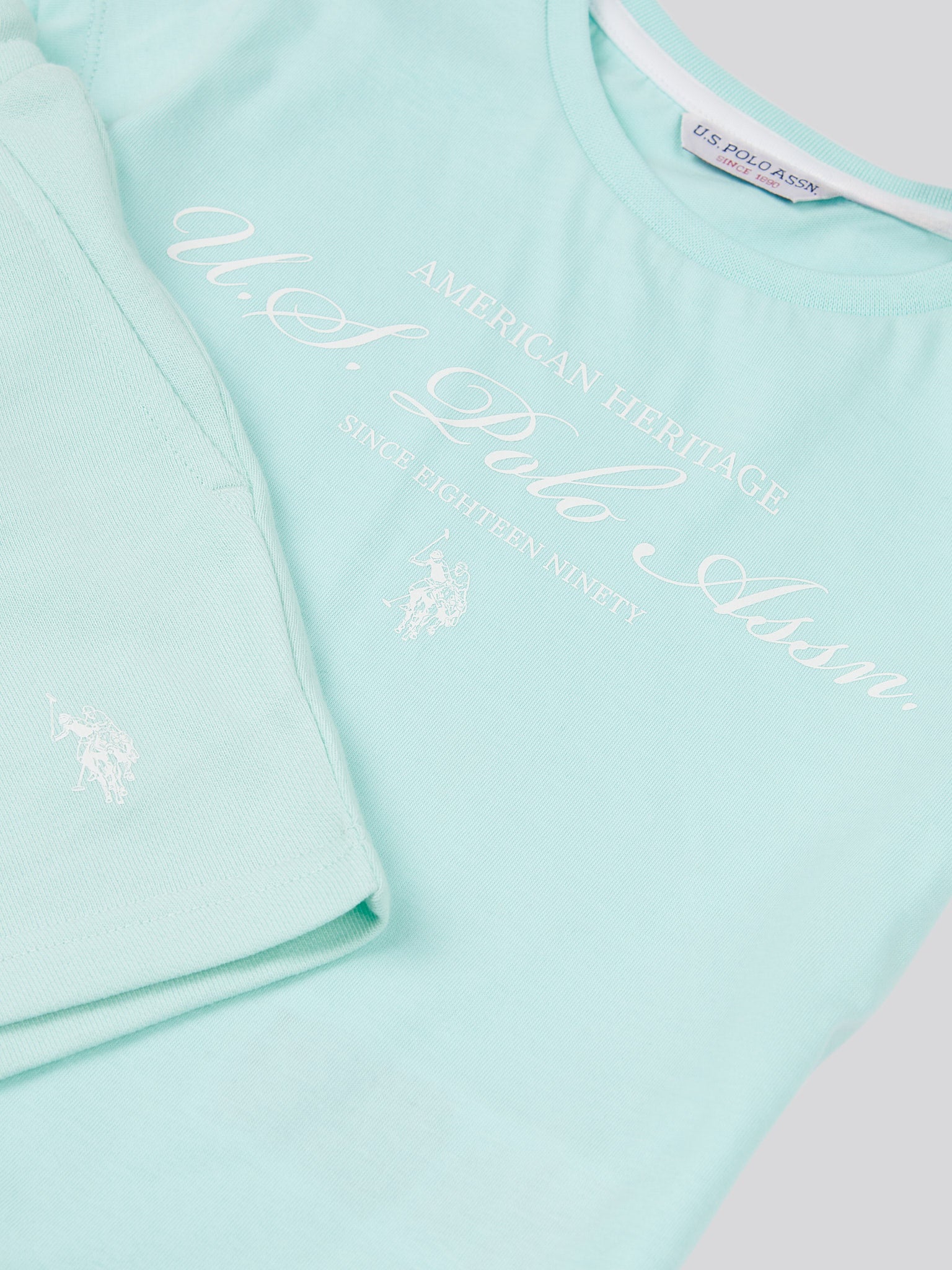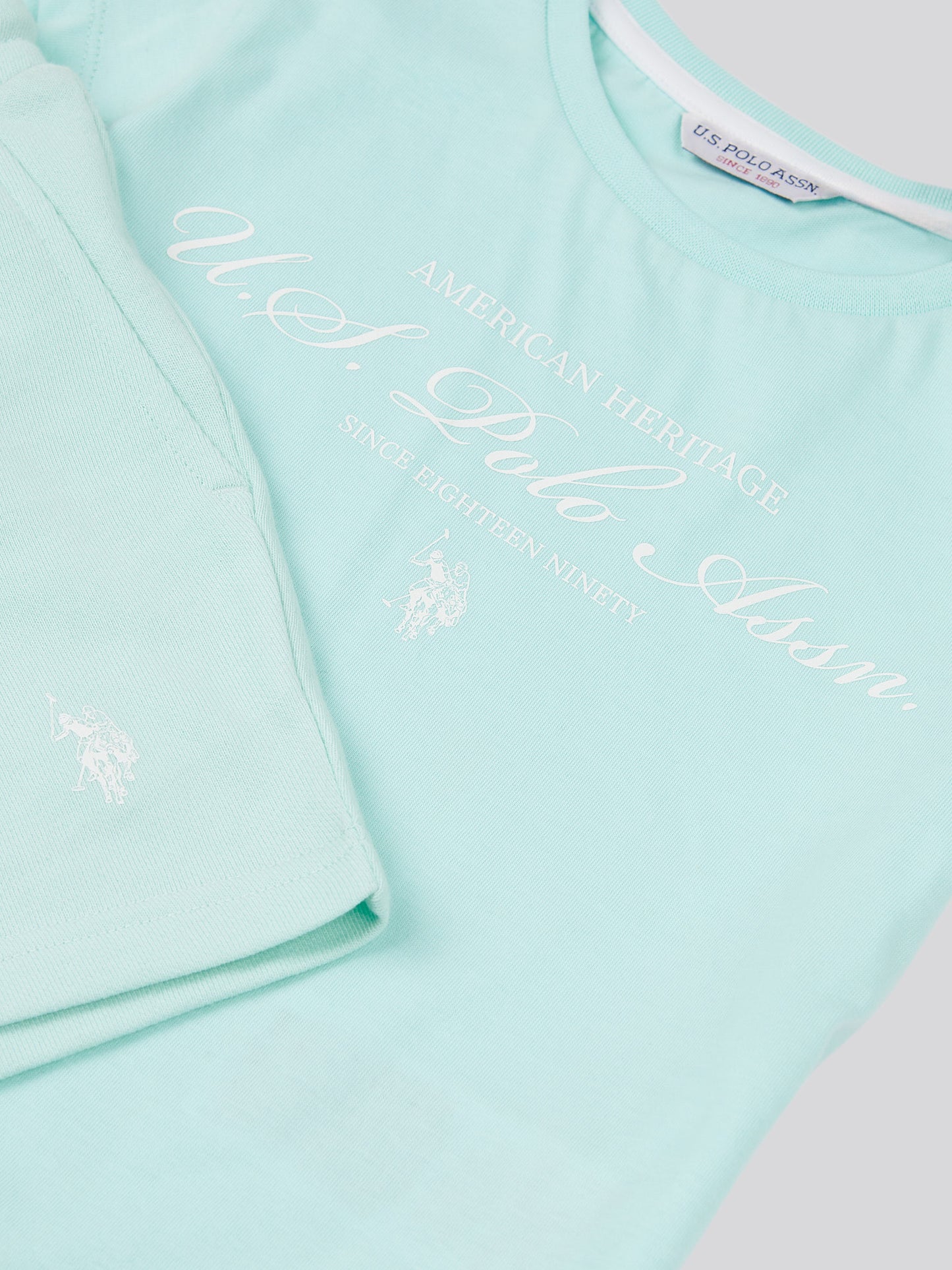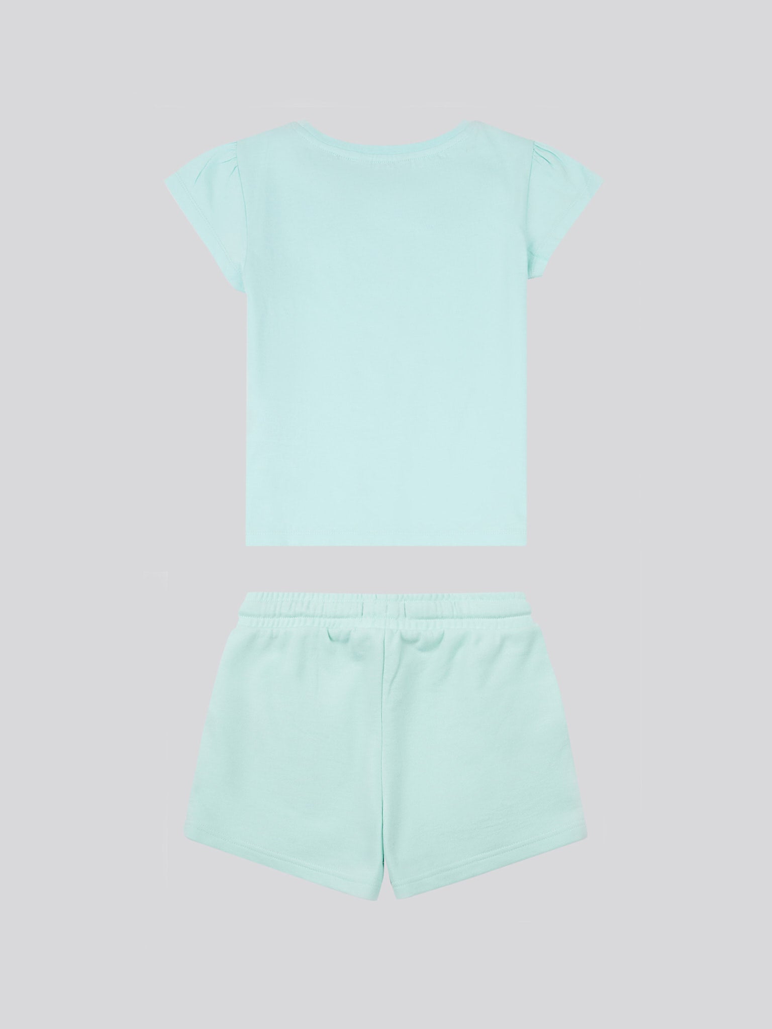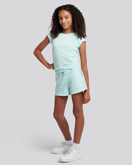 Girls Script Graphic T-Shirt & Sweat Short Set in Blue Light
