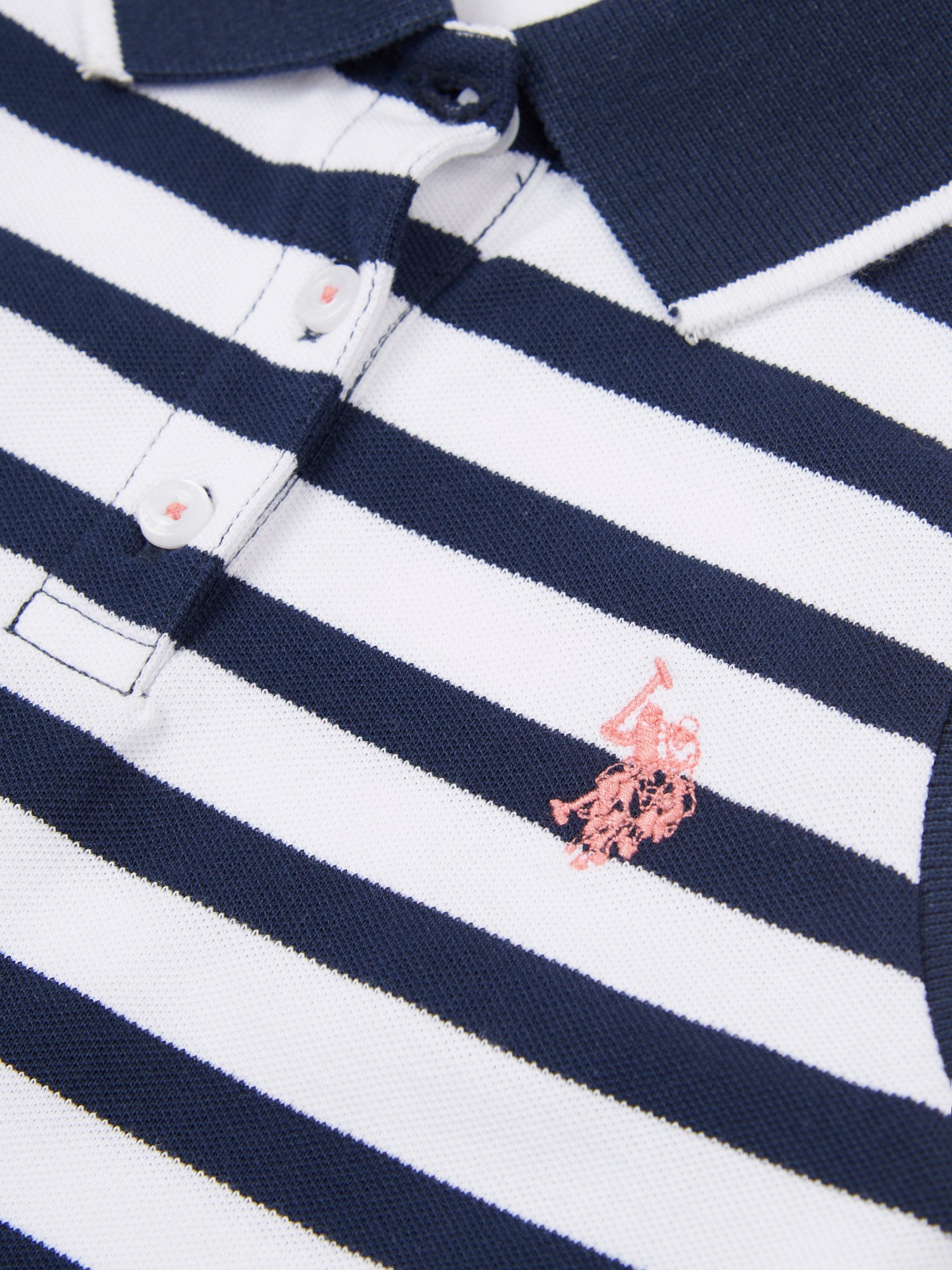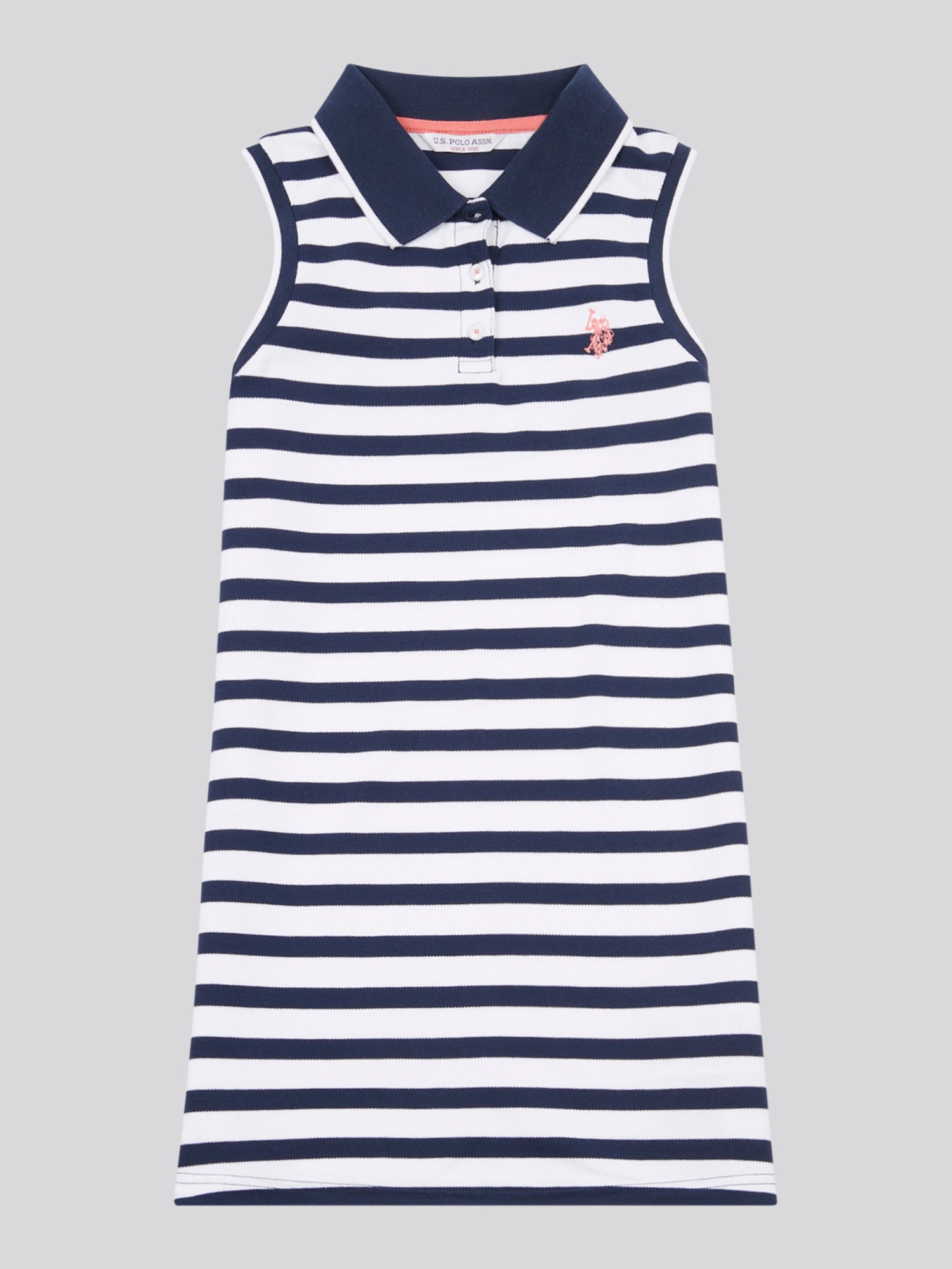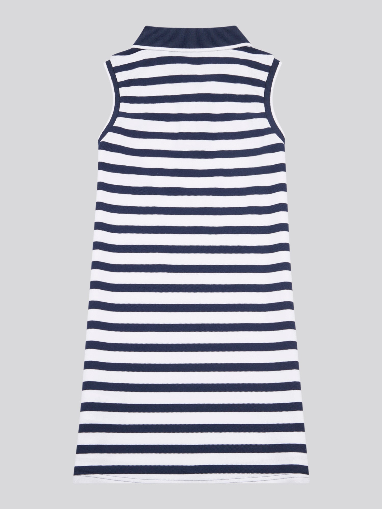 Girls Striped Sleeveless Polo Dress in Navy Iris