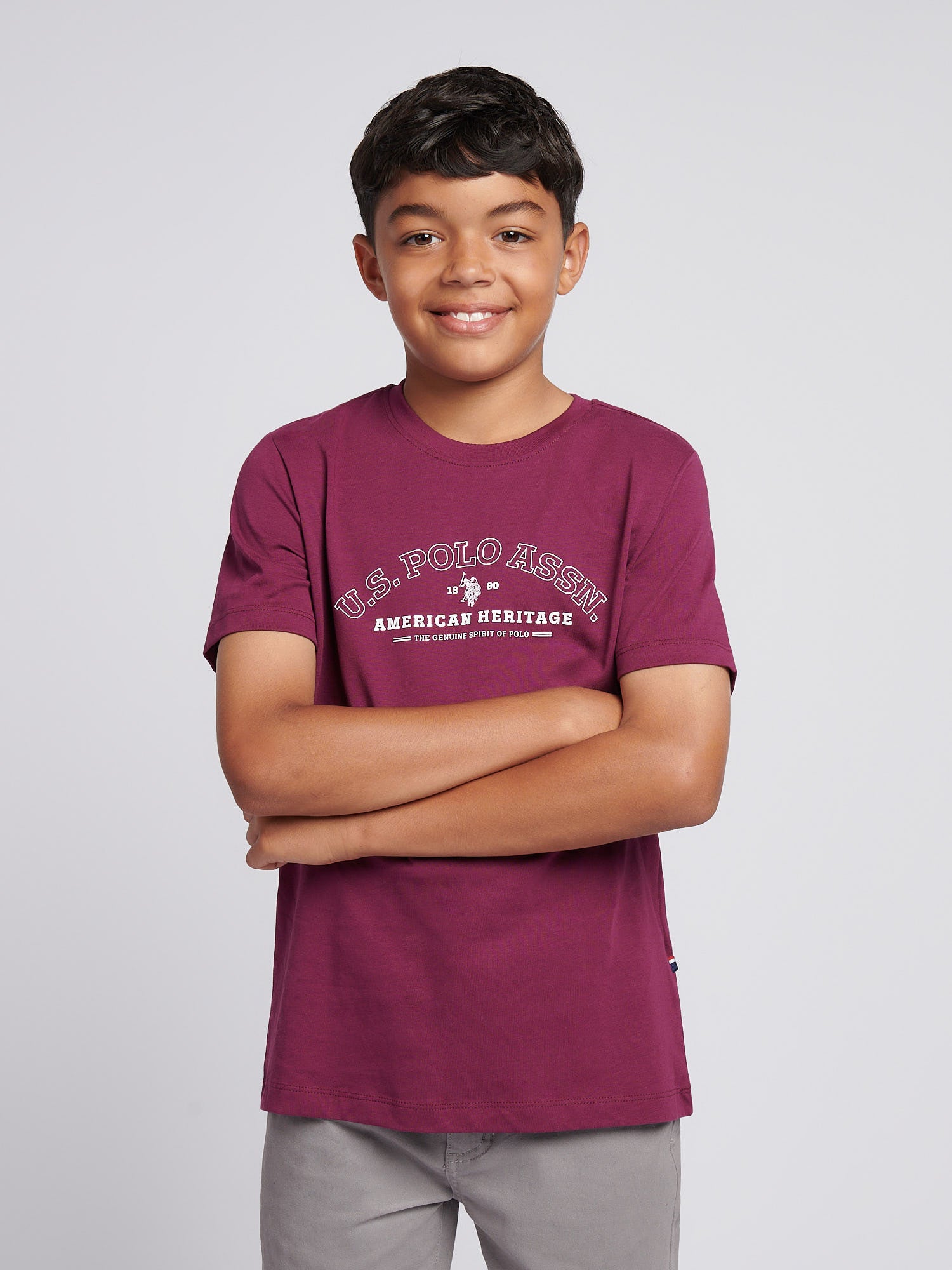 Boys Heritage Graphic Print T-Shirt in Grape Wine