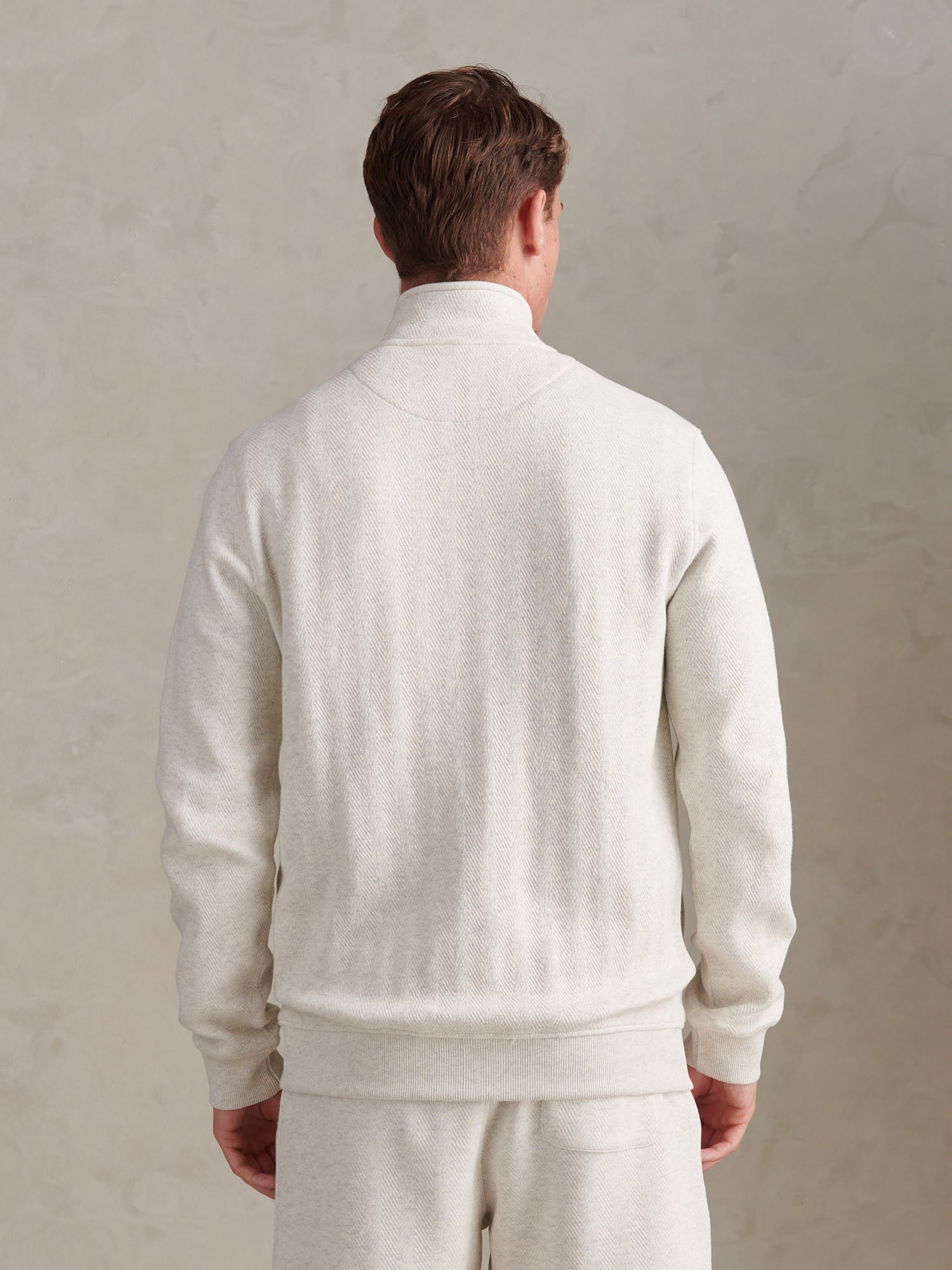 - Herringbone textured sweat fabric Adds subtle depth and interest
