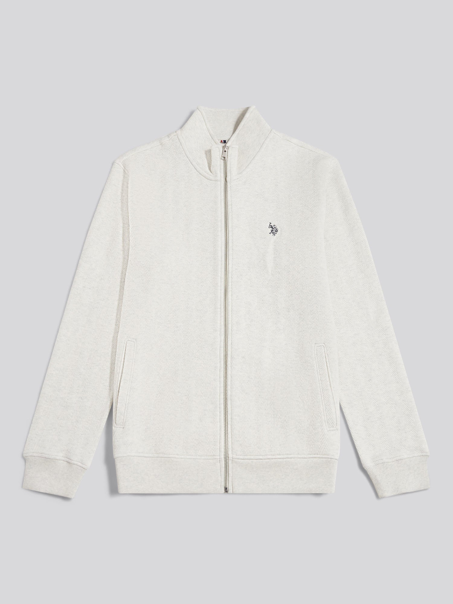 Blending subtle texture with laid-back refinement, the Mens Herringbone Zip Funnel Sweatshirt brings a fresh take on a classic layering piece from U.S. Polo Assn. Crafted from cotton-rich herringbone sweat, it feels easy to wear while the funnel neck and clean zip detail nod to the brandÕs sports-inspired heritage. Layer the Mens Herringbone Zip Funnel Sweatshirt over a polo shirt or crisp tee with chinos or denim and trainers for effortless smart-casual dressing in town or at the weekend.