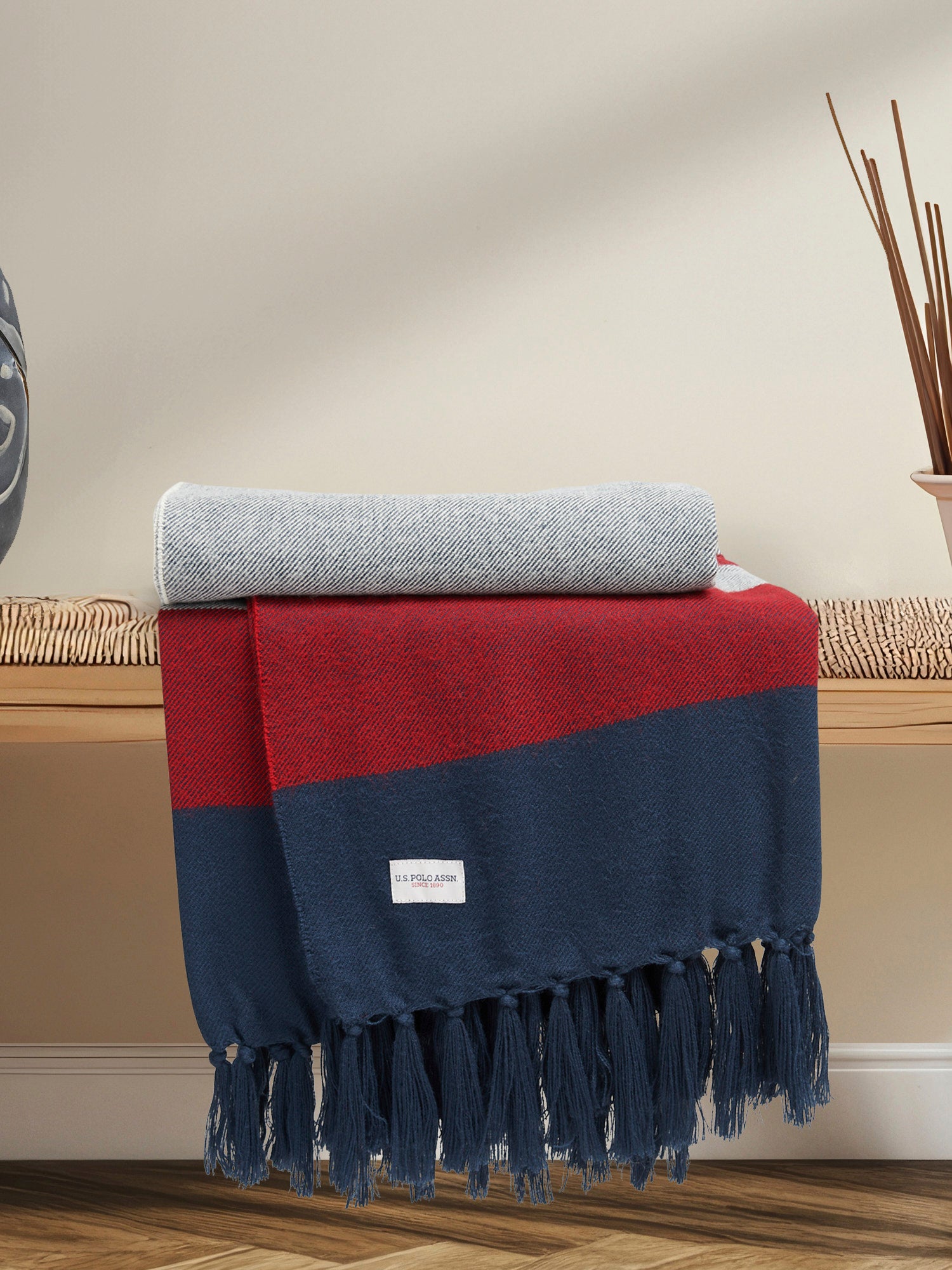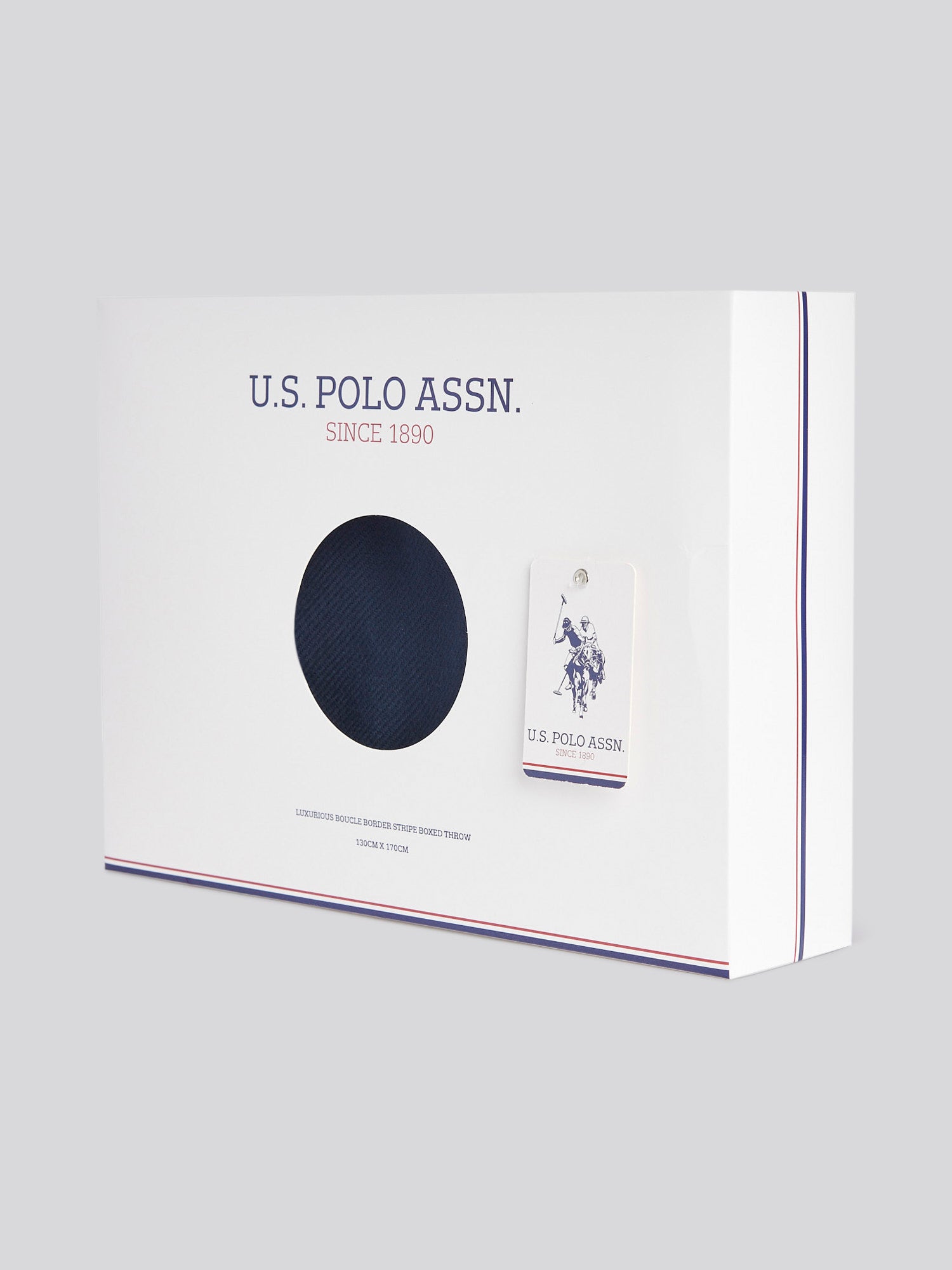 Embrace effortless elegance with the U.S. Polo Assn. Luxurious Boucle Border Stripe Boxed Throw. Crafted from soft, high-quality fabric, it features a striking striped border and delicate fringing, adding timeless appeal to your living space. Whether draped over a sofa or layered on a bed, this versatile accessory combines style and comfort. Finished with the brand’s iconic patch, it’s a sophisticated touch for any room. 130x170cm.
