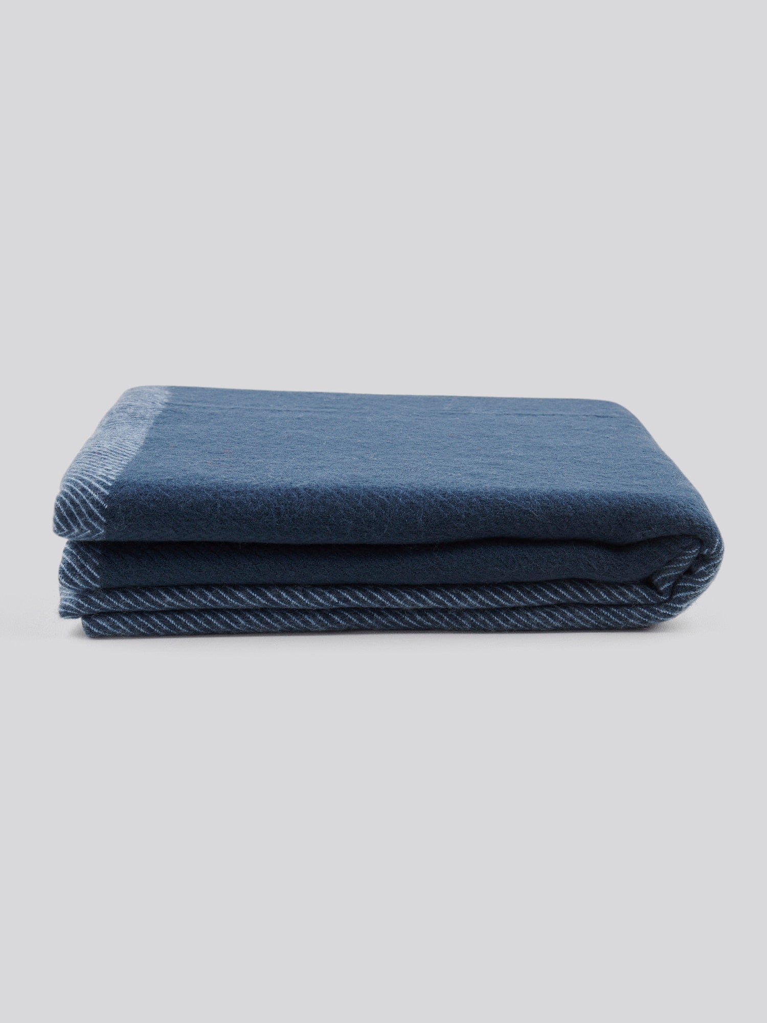Luxurious Tonal Herringbone Throw in Navy Iris