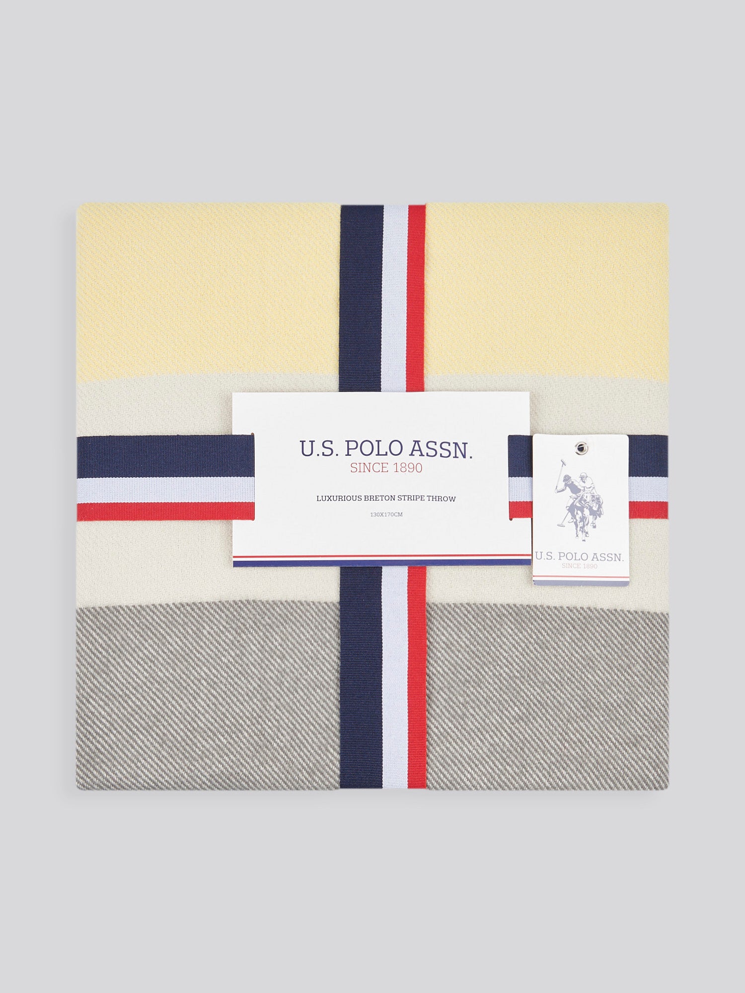 Embrace refined comfort with the U.S. Polo Assn. Luxury Breton Stripe Throw. Featuring a chic wide stripe design, this stylish throw effortlessly combines classic elegance with modern flair. Ideal for draping over sofas, beds, or shoulders, it offers warmth and visual appeal. The tasteful fringing and brand patch enhance its luxe aesthetic, making it the perfect accessory for cosy evenings. Dimensions: 130x170cm.