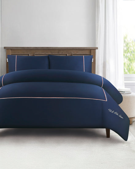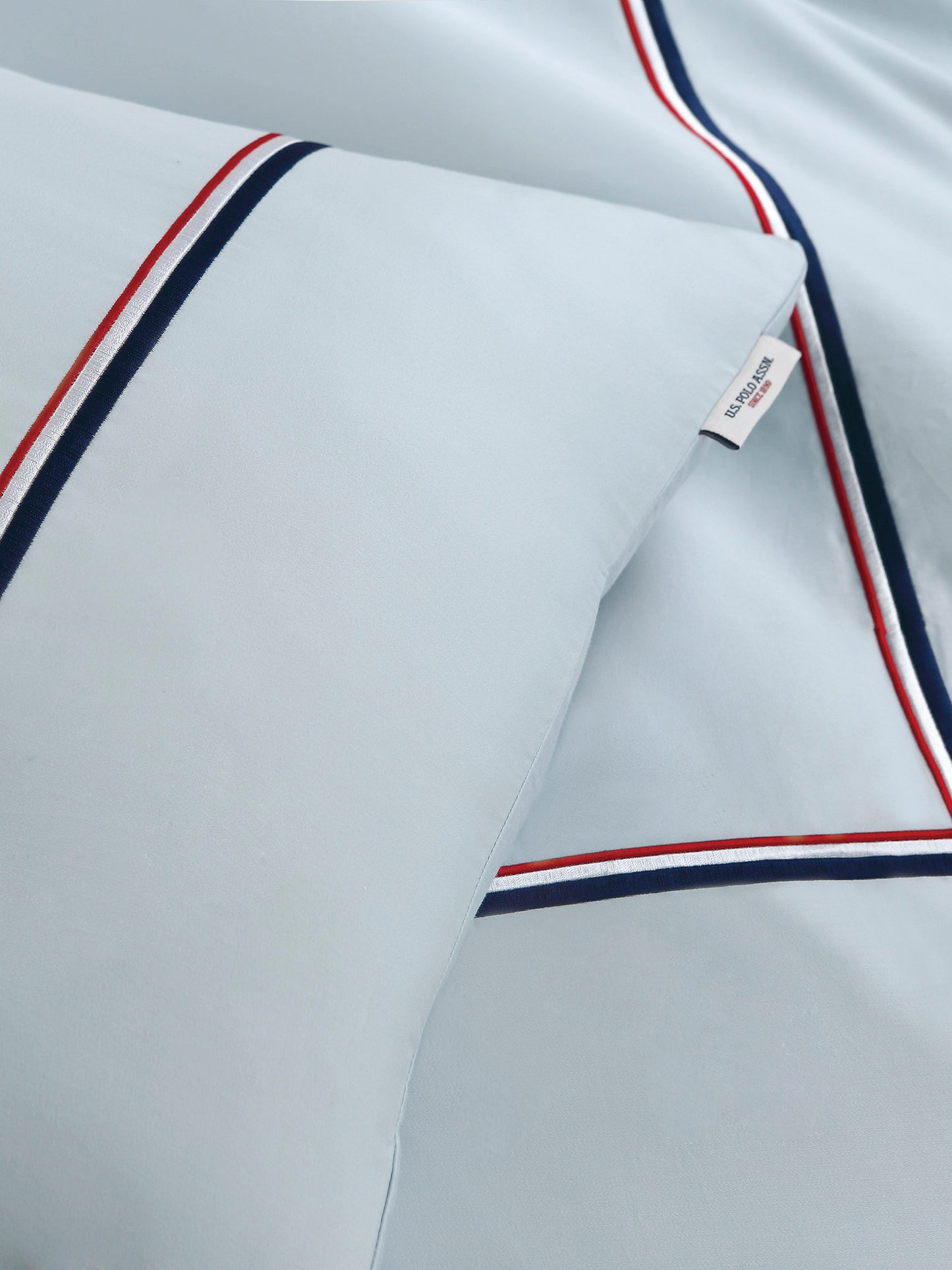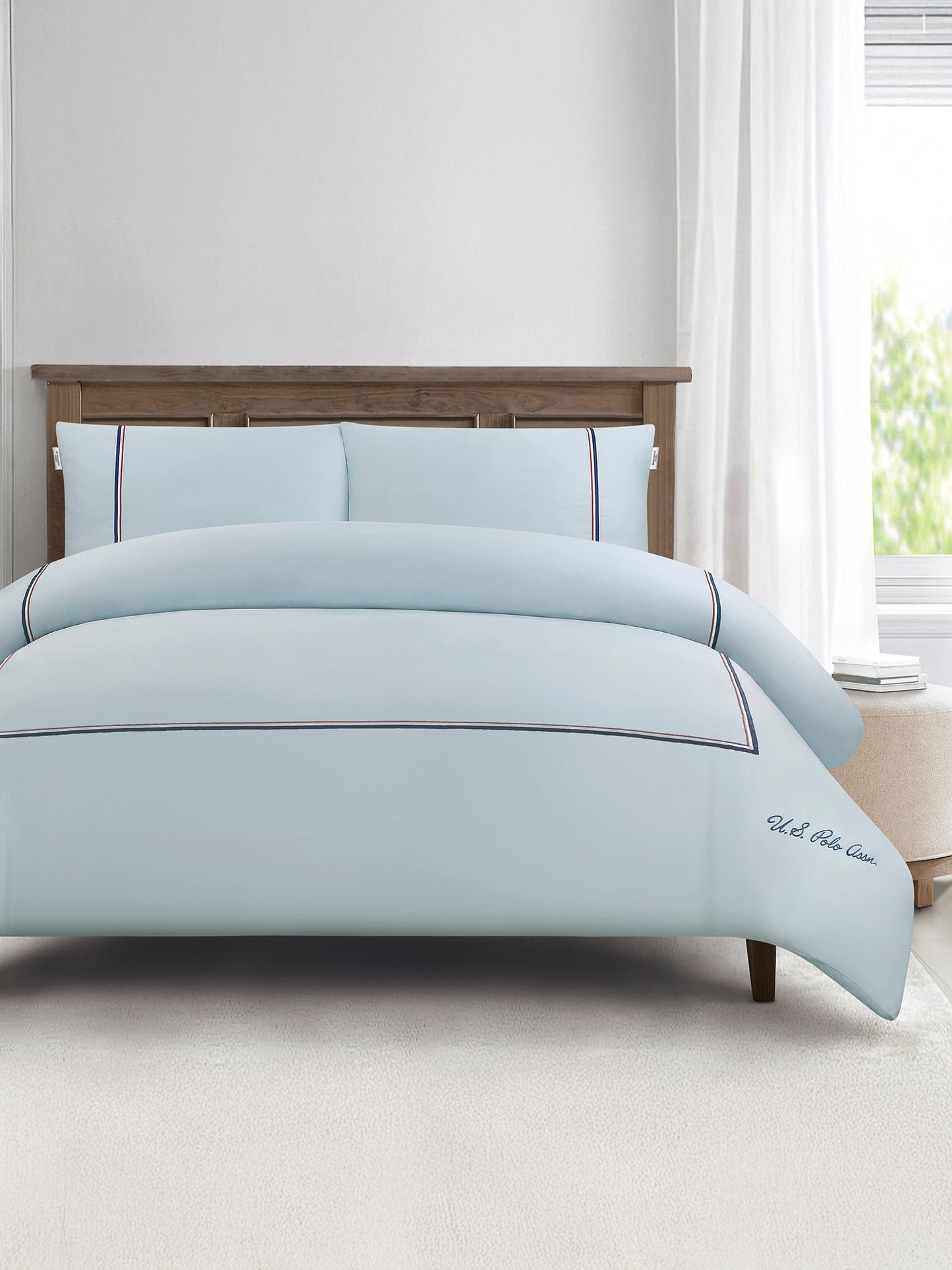 Indulge in timeless comfort with the U.S. Polo Assn. Luxury Cotton Brand Stripe Duvet Set. Crafted from 100% cotton sateen with a 400 thread count, this set offers an ultra-soft touch and refined finish. The elegant brand stripe trim adds a signature touch, elevating the design while maintaining a classic look. Finished with branded tabs on the seams, it brings a touch of heritage to your home.