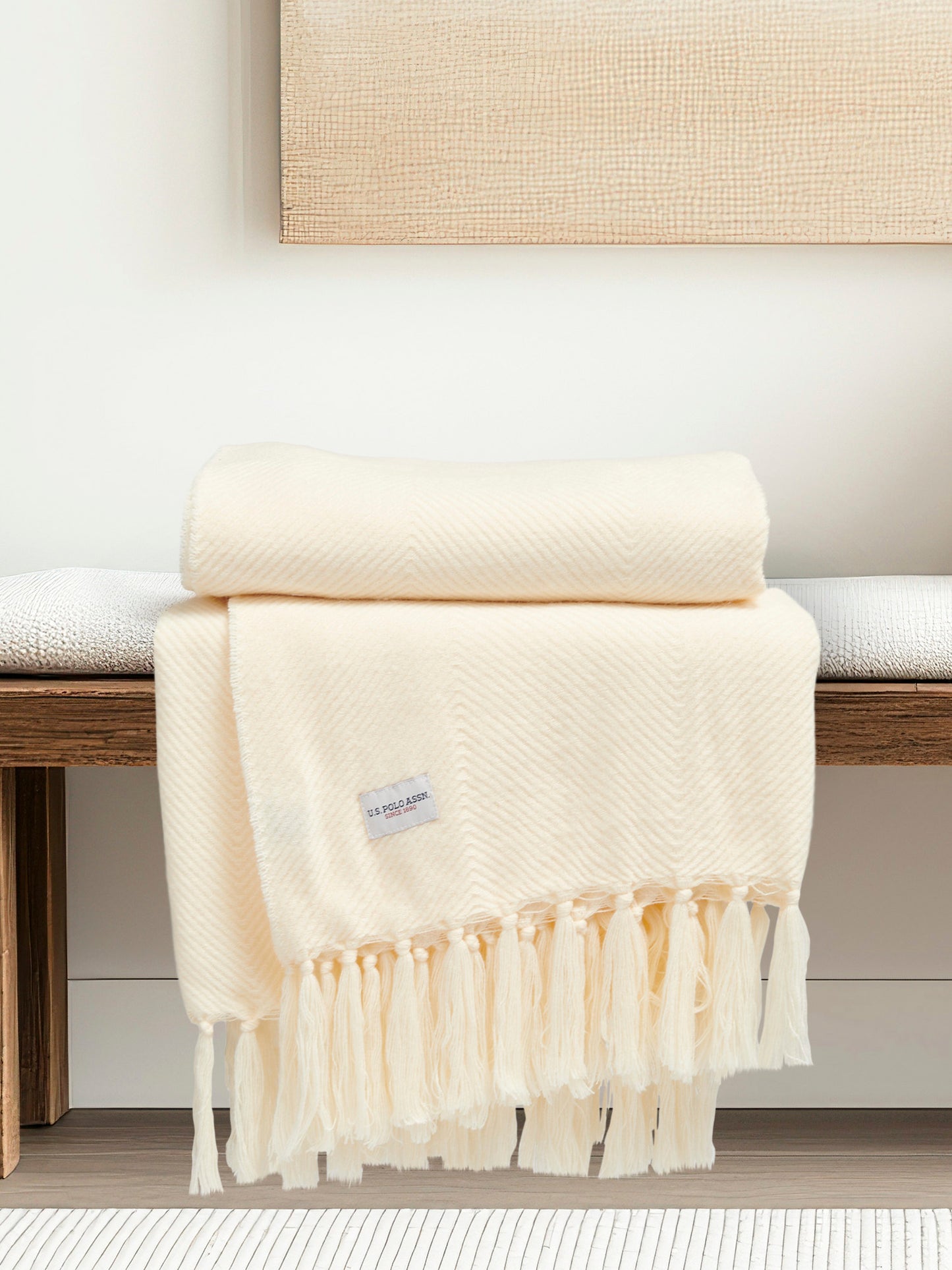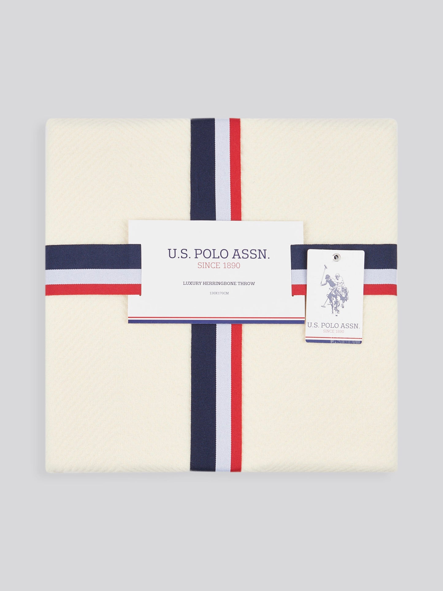 Elevate your home with the U.S. Polo Assn. Luxury Herringbone Throw. Crafted from soft, high-quality fabric, this throw showcases a classic herringbone pattern and delicate fringing, adding texture and sophistication to any space. Perfect for draping over a sofa or layering on a bed, it serves as both a warm companion and a stylish accent. Coordinate with matching tones for a harmonious finish. 130x170cm.