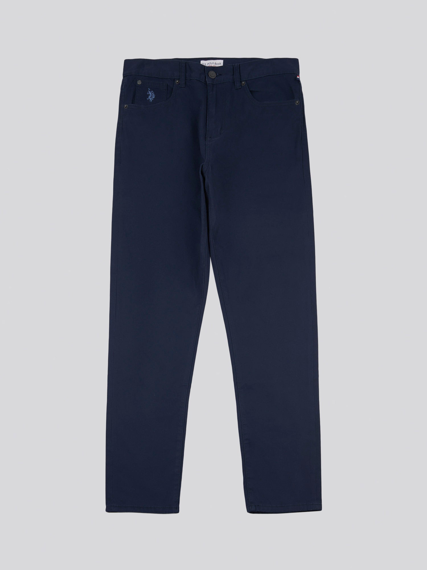 A refined take on a timeless classic, the U.S. Polo Assn. Mens Bedford Cord 5 Pocket Trouser delivers everyday comfort with an elevated finish. Cut from stretch cord fabric in a regular fit, it offers a clean silhouette suited for smart-casual dressing. Style with a tucked-in polo and loafers to bridge formal and relaxed.