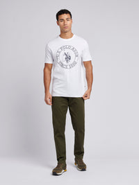 A refined take on a timeless classic, the U.S. Polo Assn. Mens Bedford Cord 5 Pocket Trouser delivers everyday comfort with an elevated finish. Cut from stretch cord fabric in a regular fit, it offers a clean silhouette suited for smart-casual dressing. Style with a tucked-in polo and loafers to bridge formal and relaxed.