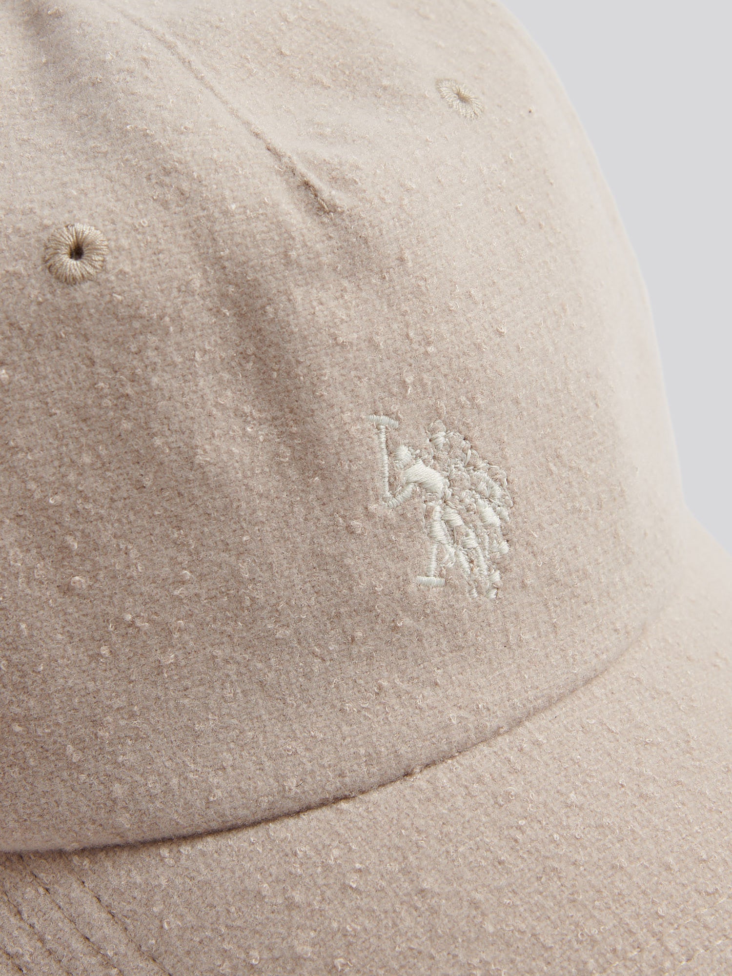 Designed with a nod to authentic sporting heritage, the U.S. Polo Assn. Mens Boucle Cap brings timeless texture to modern daywear. This unstructured baseball cap features refined embroidery and thoughtful detailing that elevate a casual essential. Style with a relaxed overshirt and chinos for understated weekend polish.