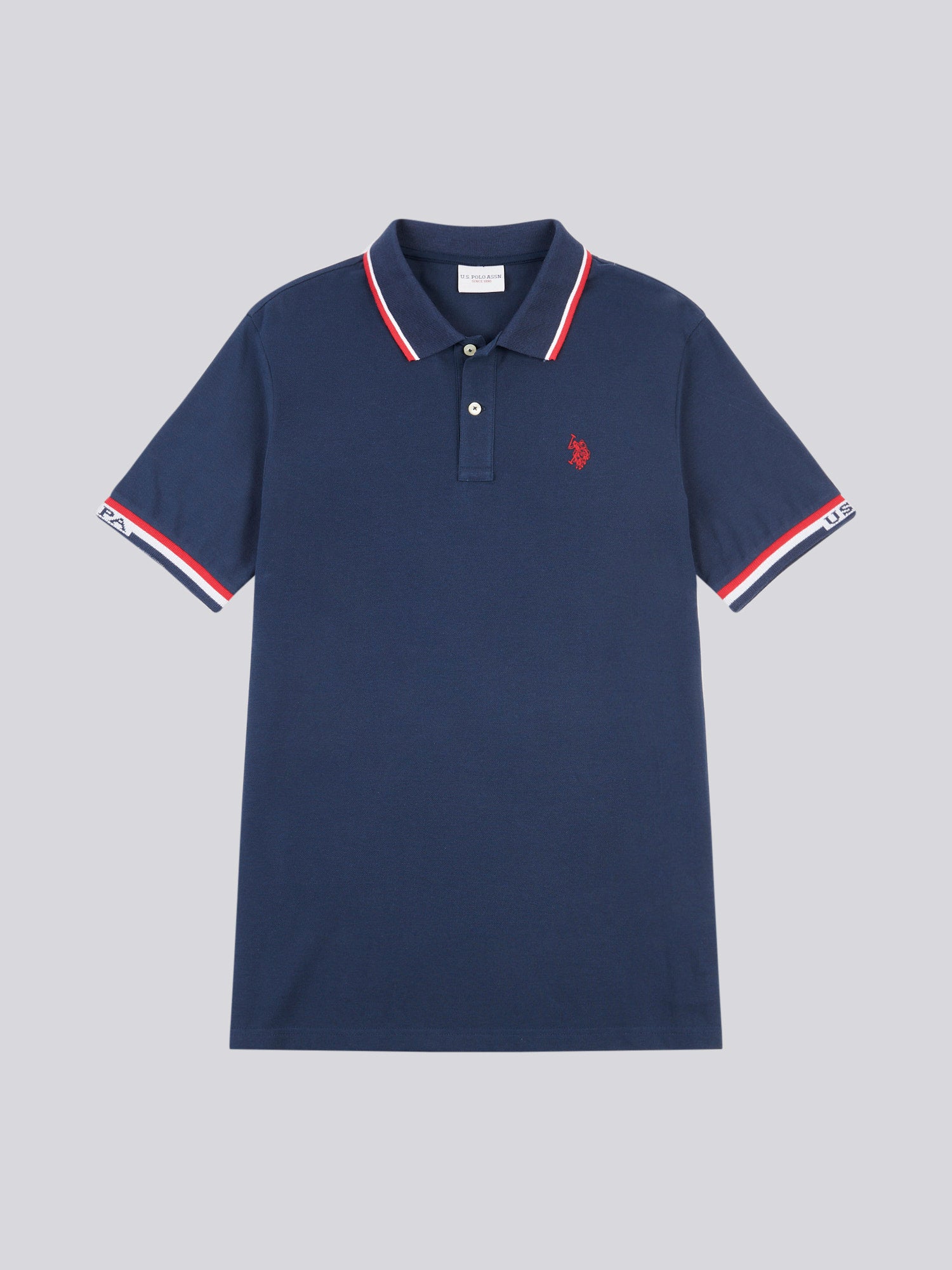 The U.S. Polo Assn. Mens Brand Stripe Pique Polo Shirt combines classic style with modern comfort, crafted from premium cotton pique. With refined details like the embroidered double horsemen logo and tricolour-tipped collar, it offers a versatile look that pairs perfectly with chinos for a smart finish or jeans for relaxed sophistication.