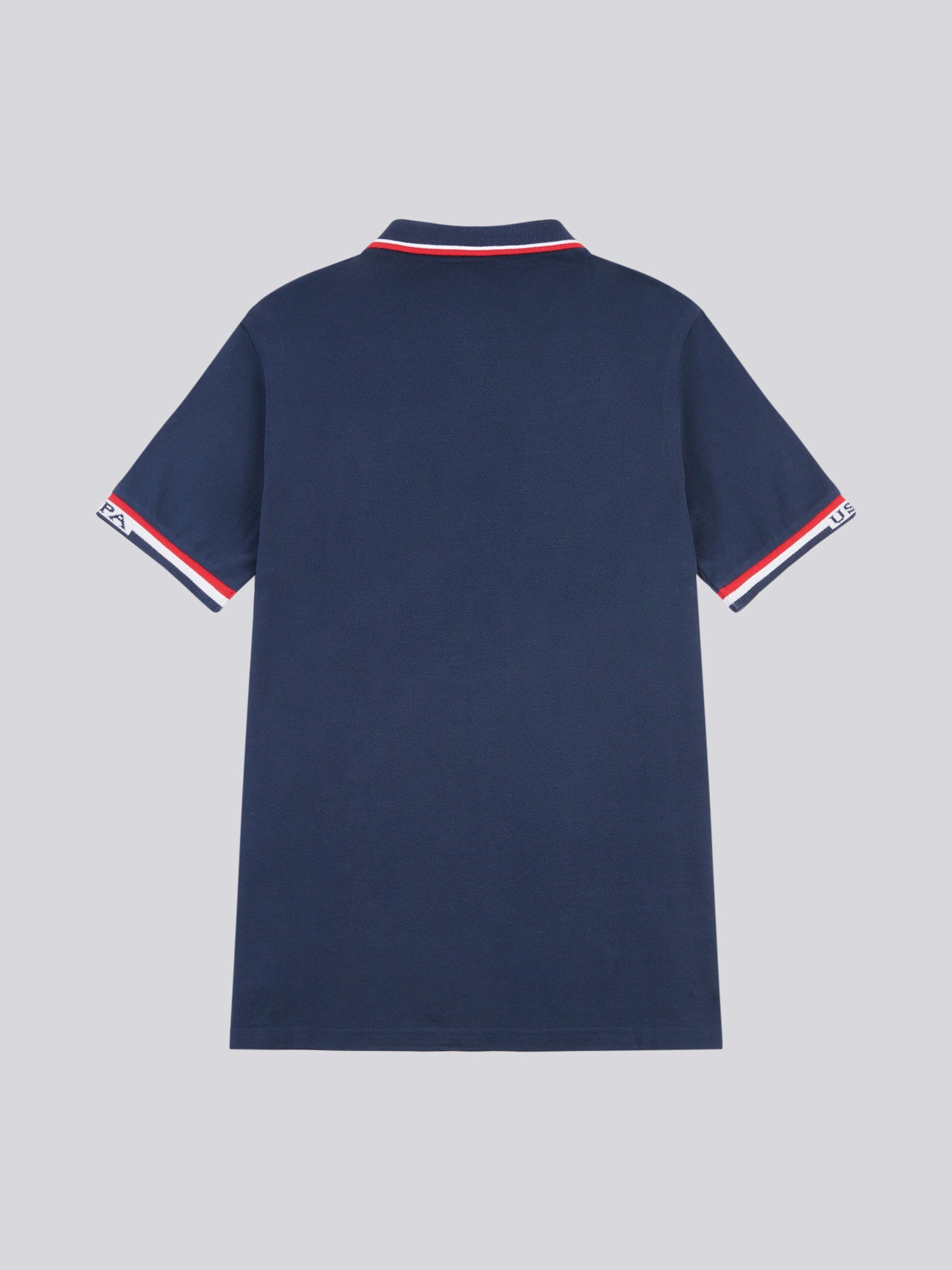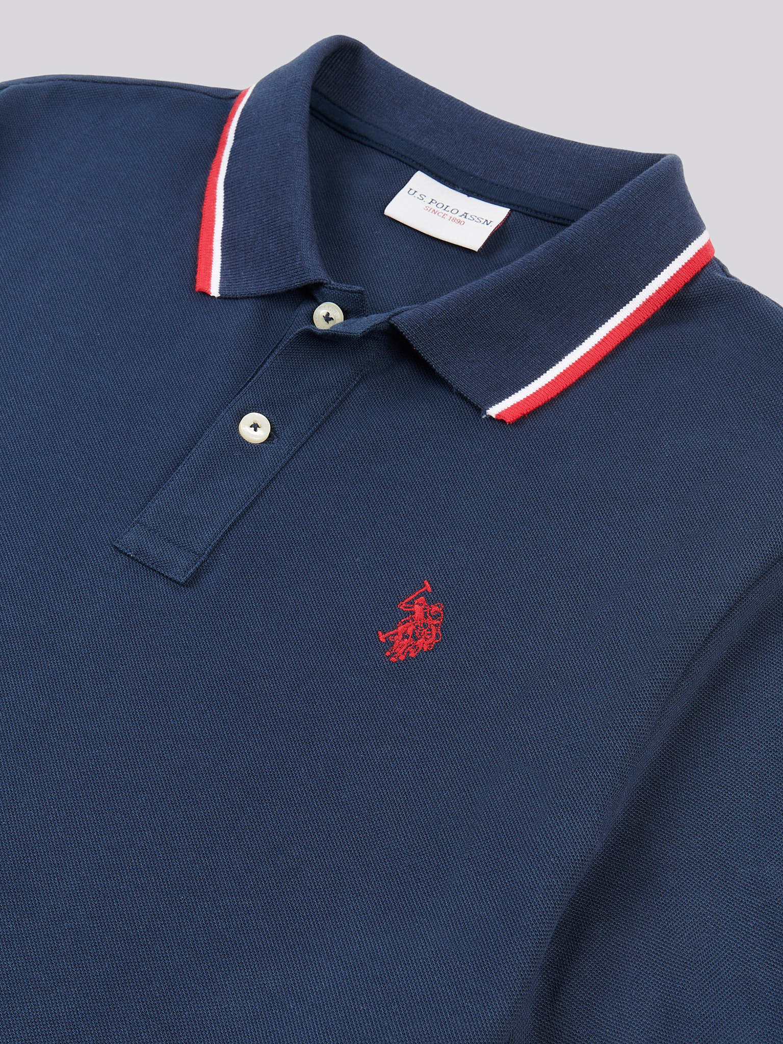 Mens Brand Stripe Pique Polo Shirt in Dark Sapphire Navy