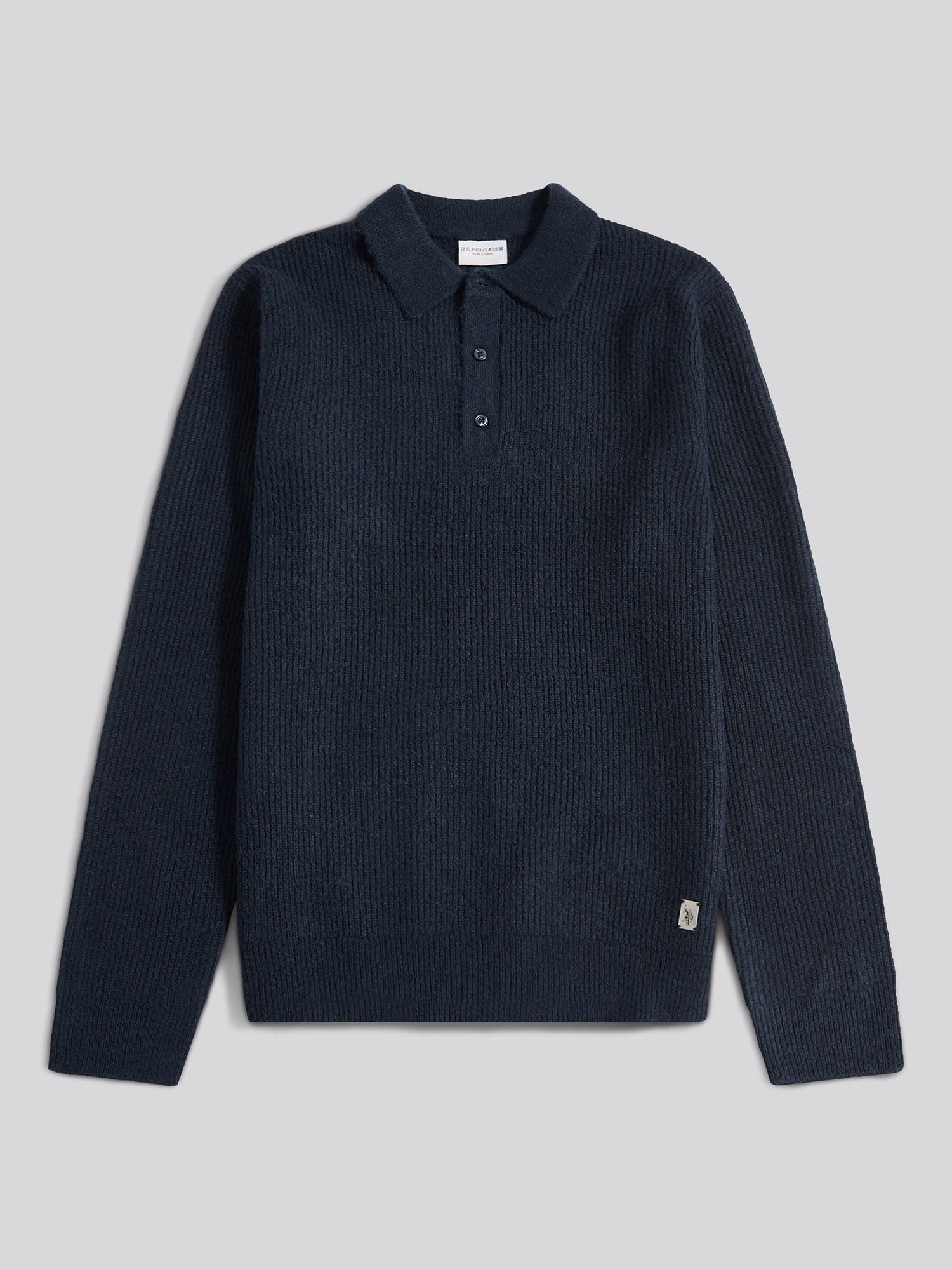 Mens Brushed Knit Long Sleeve Polo Shirt in Dark Sapphire Navy