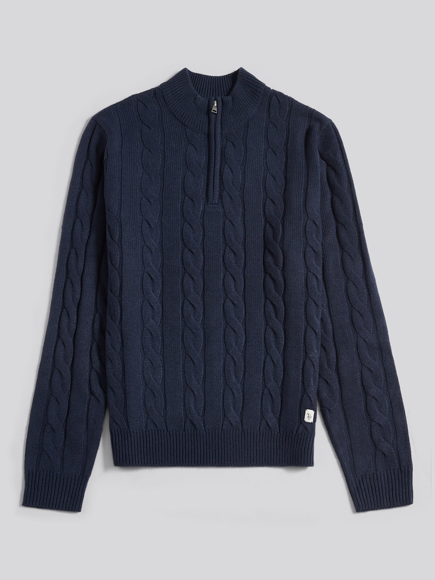 Mens Cable Knit Funnel in Dark Sapphire Navy