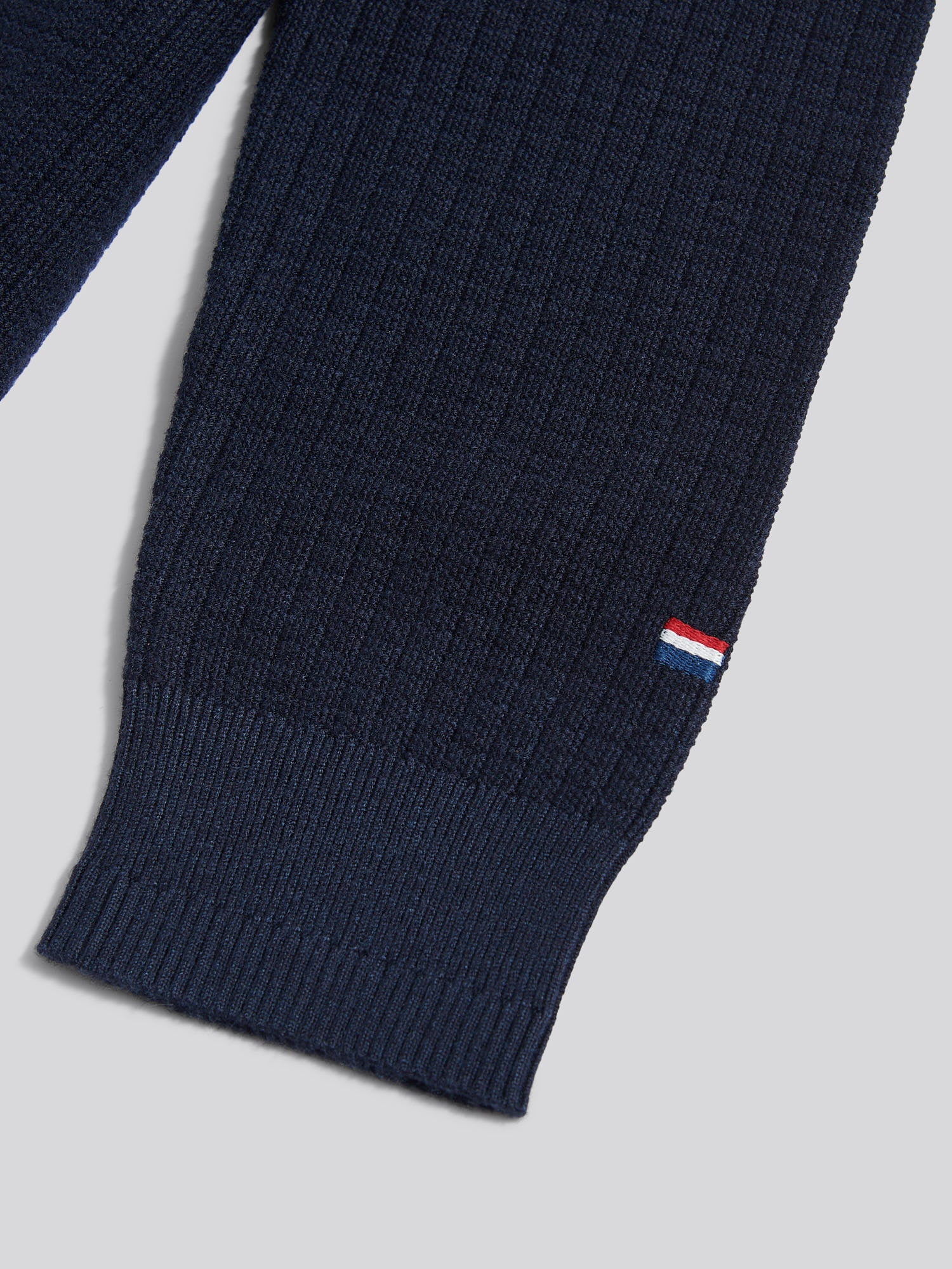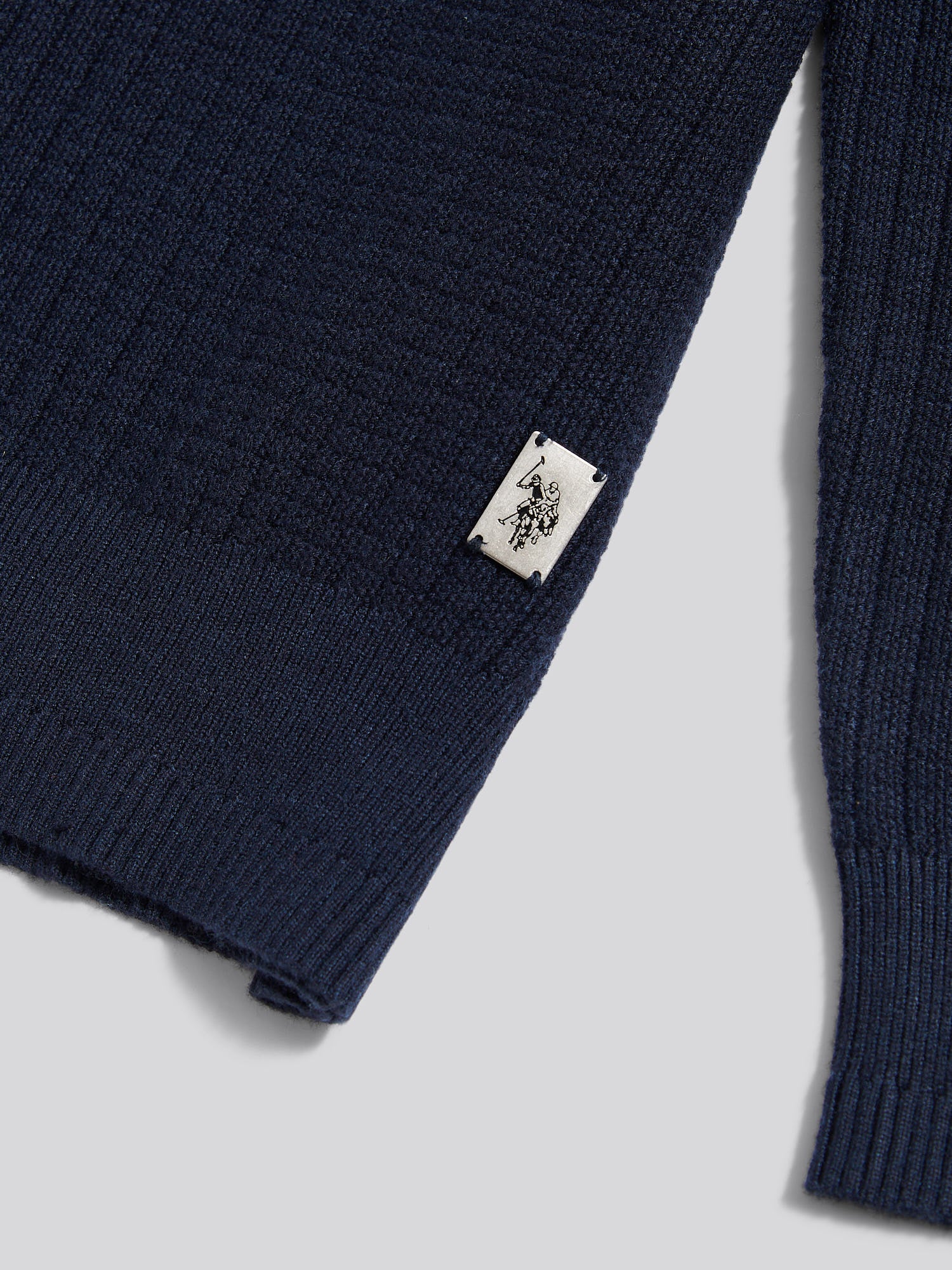 - Check texture knit: Refined structure with subtle detail