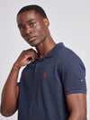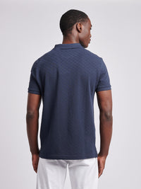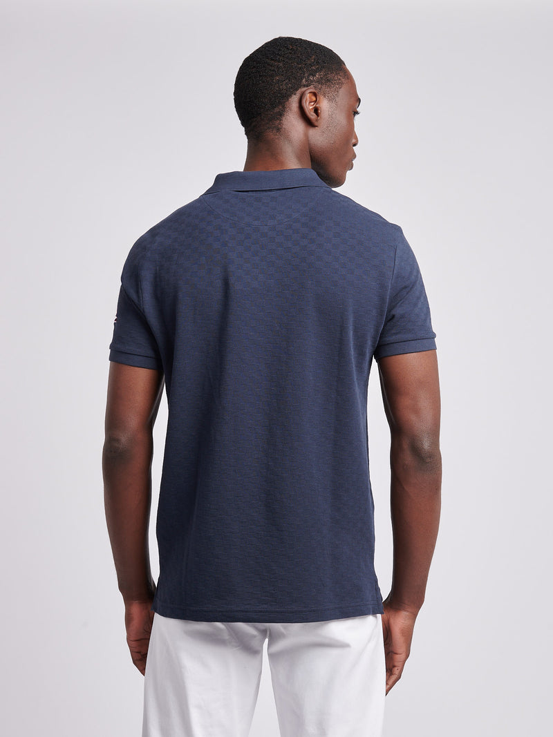 Mens Check Texture Polo Shirt in Dark Sapphire Navy / Haute Red DHM