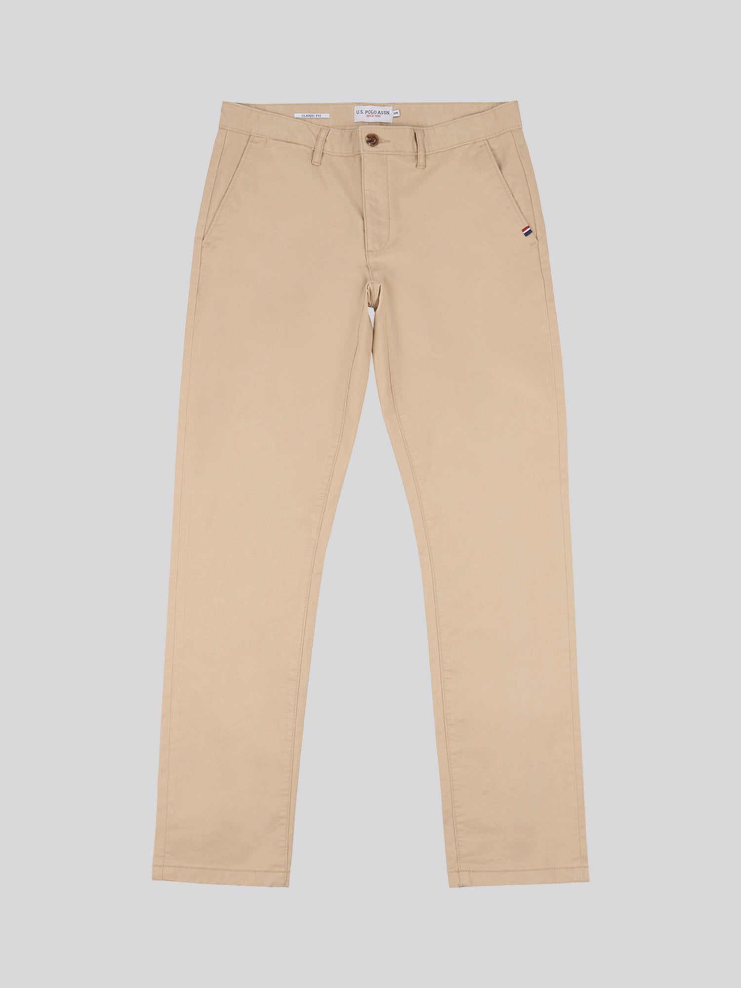 Move with style and ease in the mens Classic Chinos by U.S. Polo Assn. Crafted from soft cotton with added stretch, these chinos offer both comfort and a refined touch to your casual wardrobe. Pair with a shirt and jumper for a sophisticated layered look.