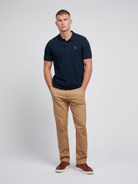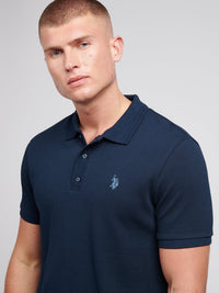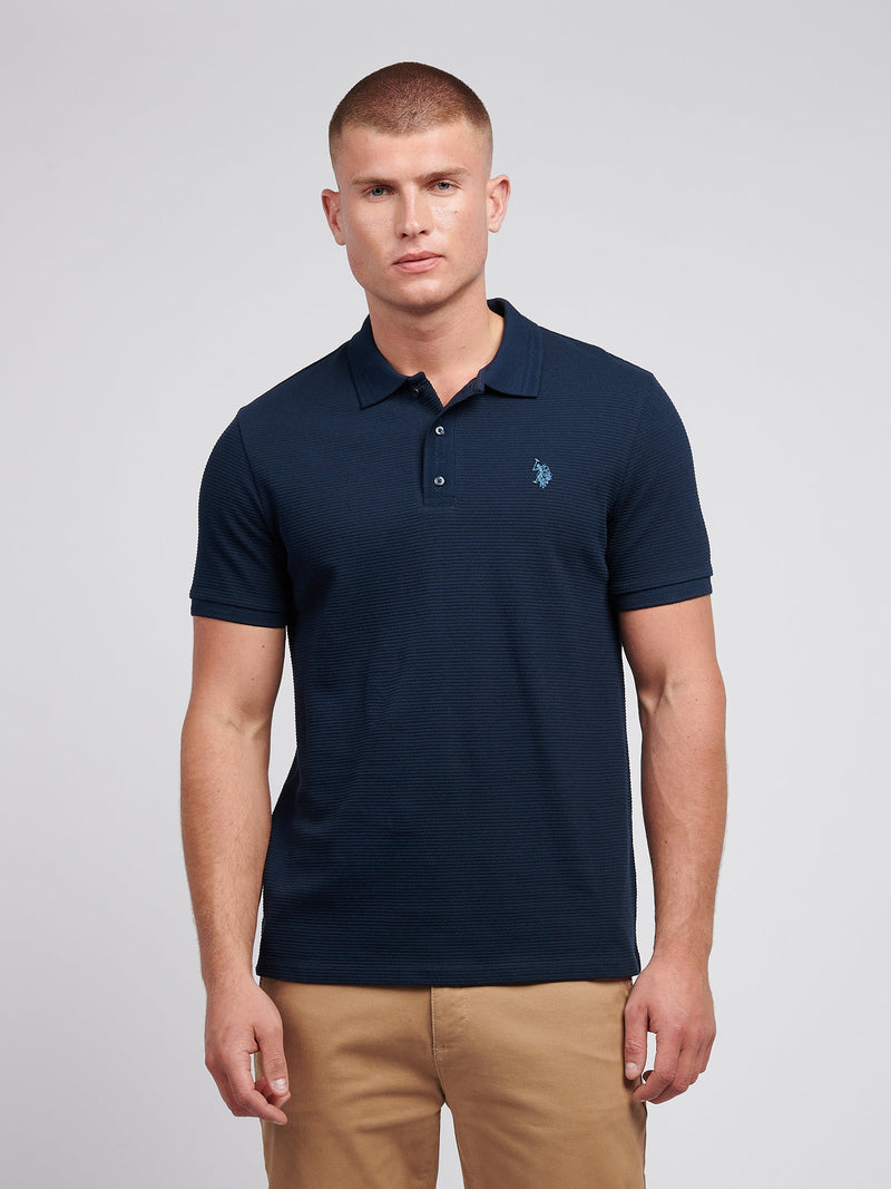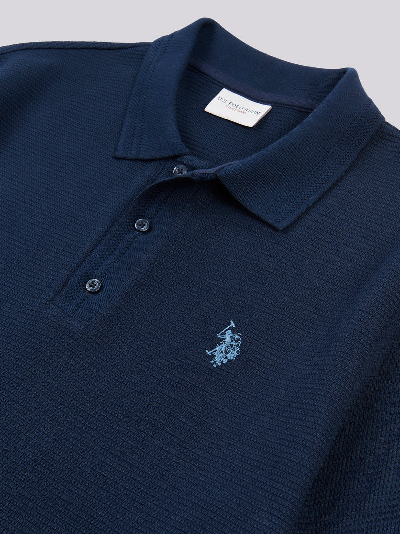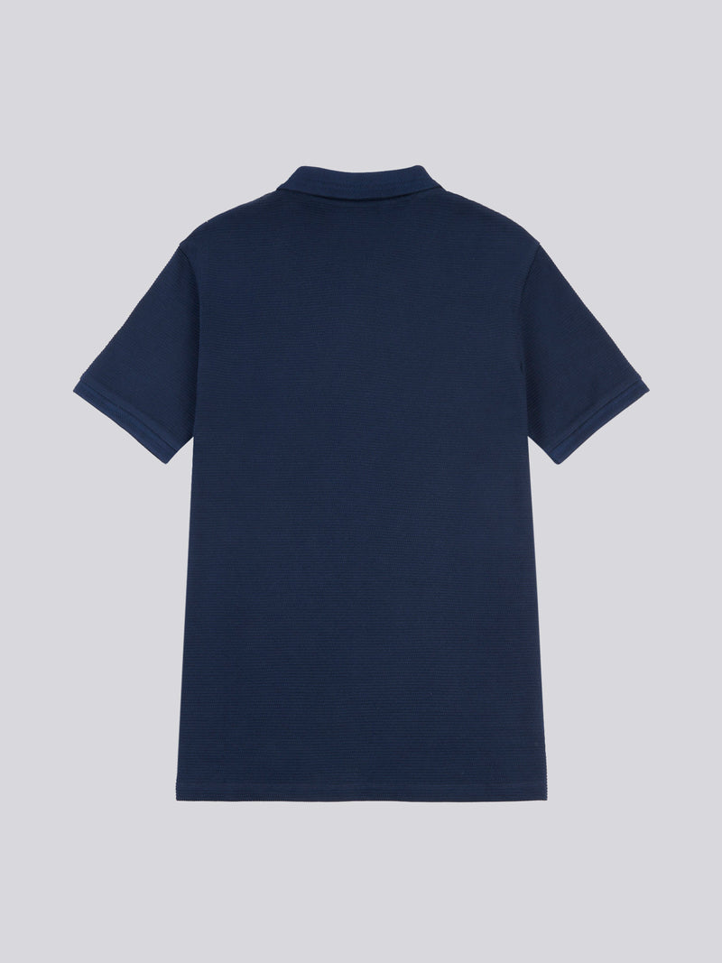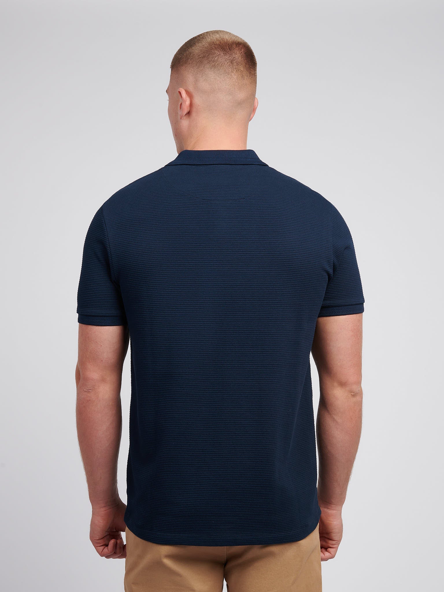 Mens Collar Interest Textured Polo Shirt in Dark Sapphire Navy / Moonlight Blue DHM