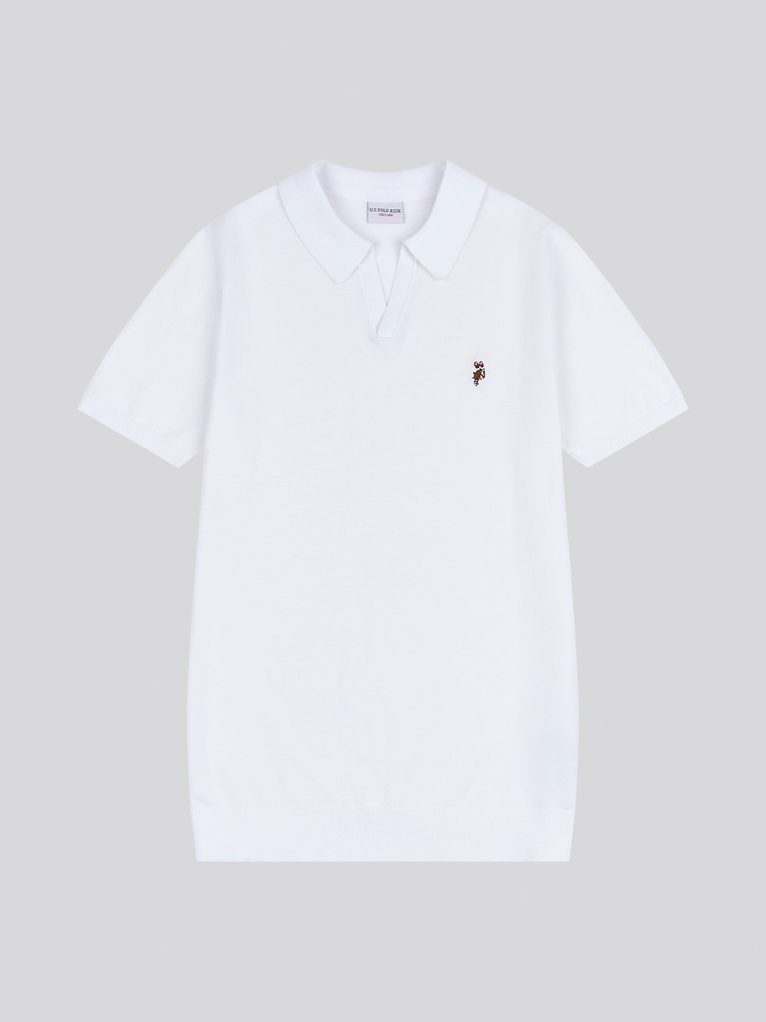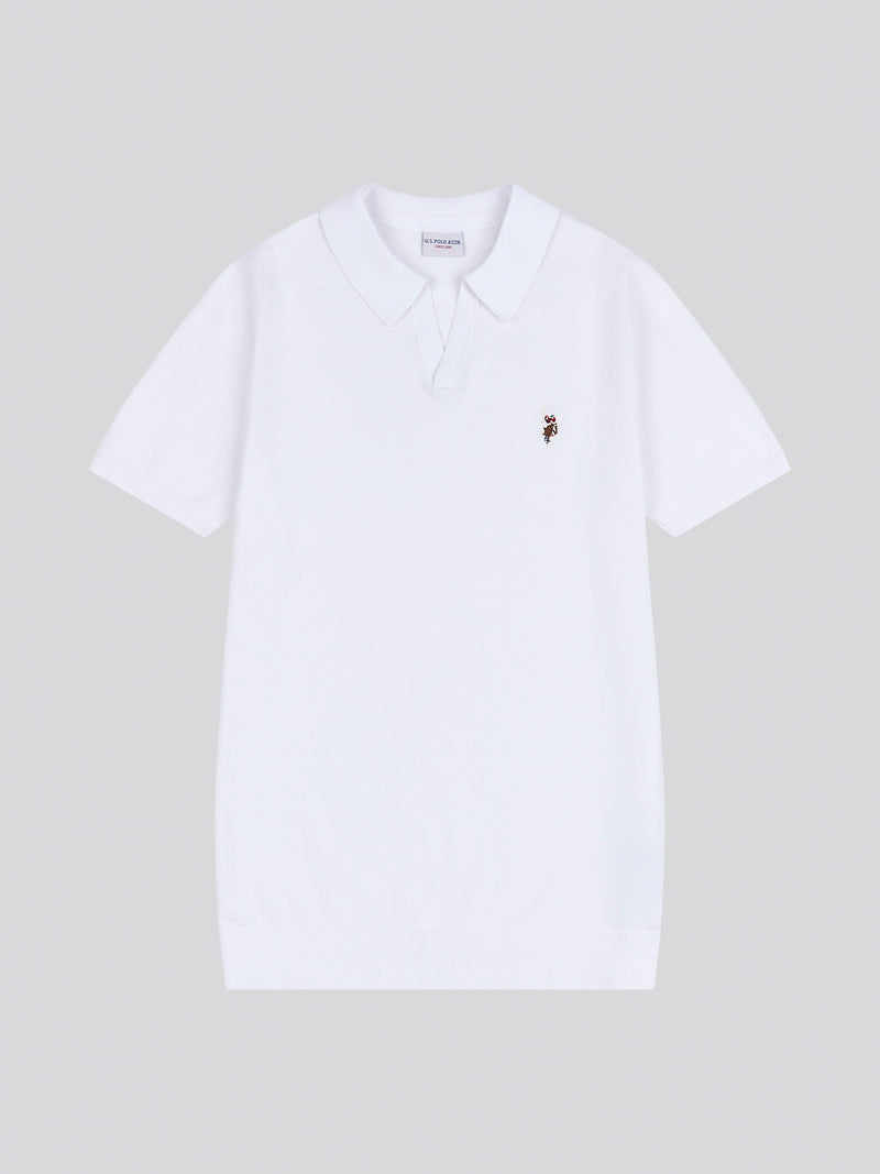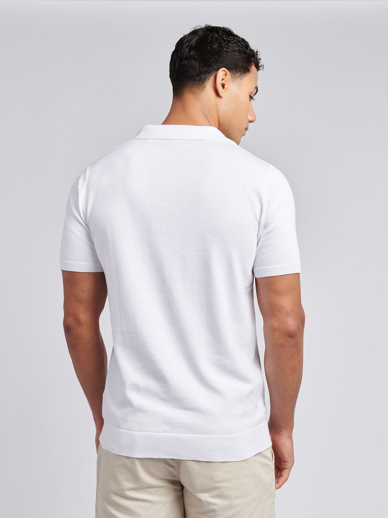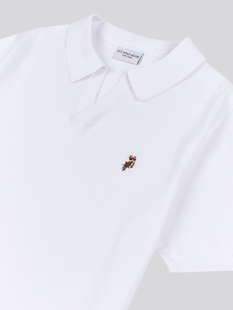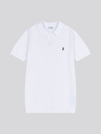 Mens Combed Cotton Revere Polo Shirt in Bright White / Multicolour DHM