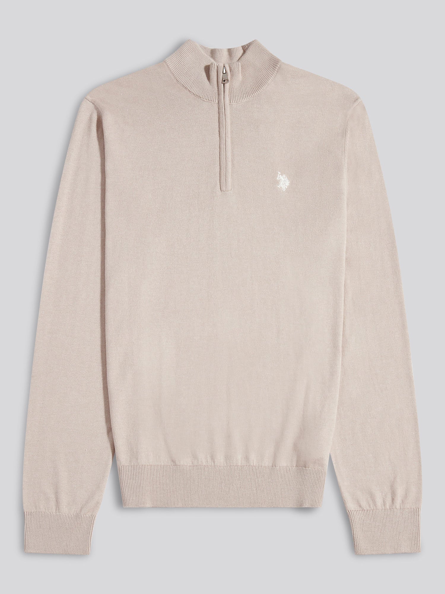 Mens Cotton Funnel Neck 1/4 Zip Knit in Atmosphere