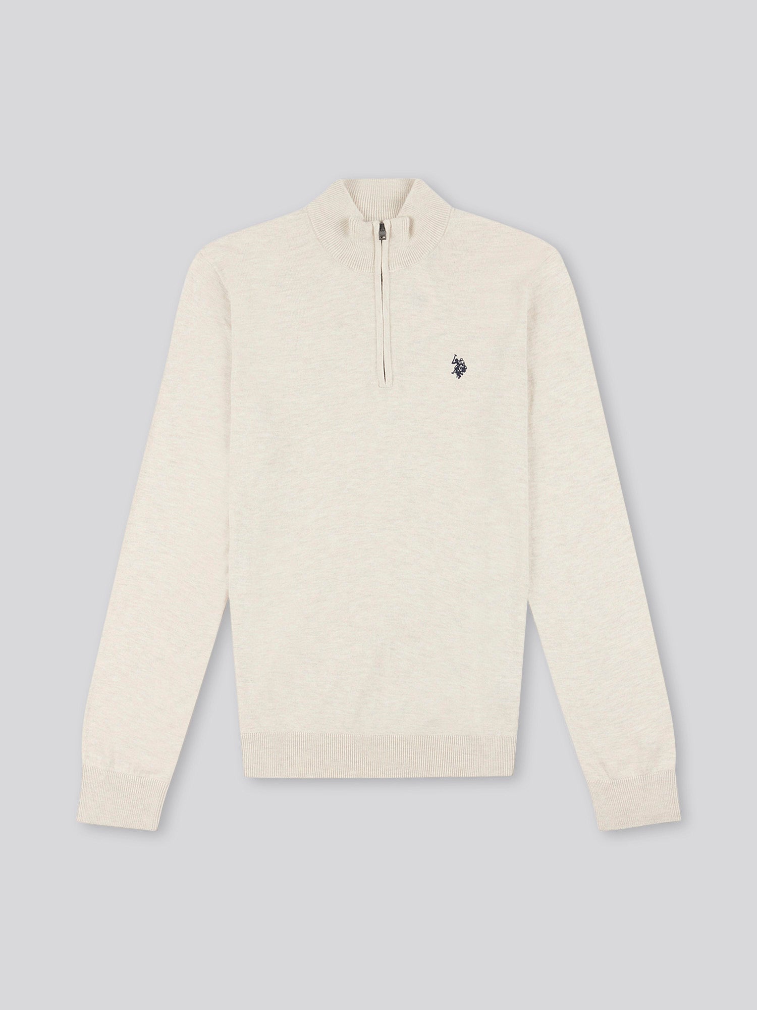 Mens Cotton Funnel Neck 1/4 Zip Knit in Birch Marl