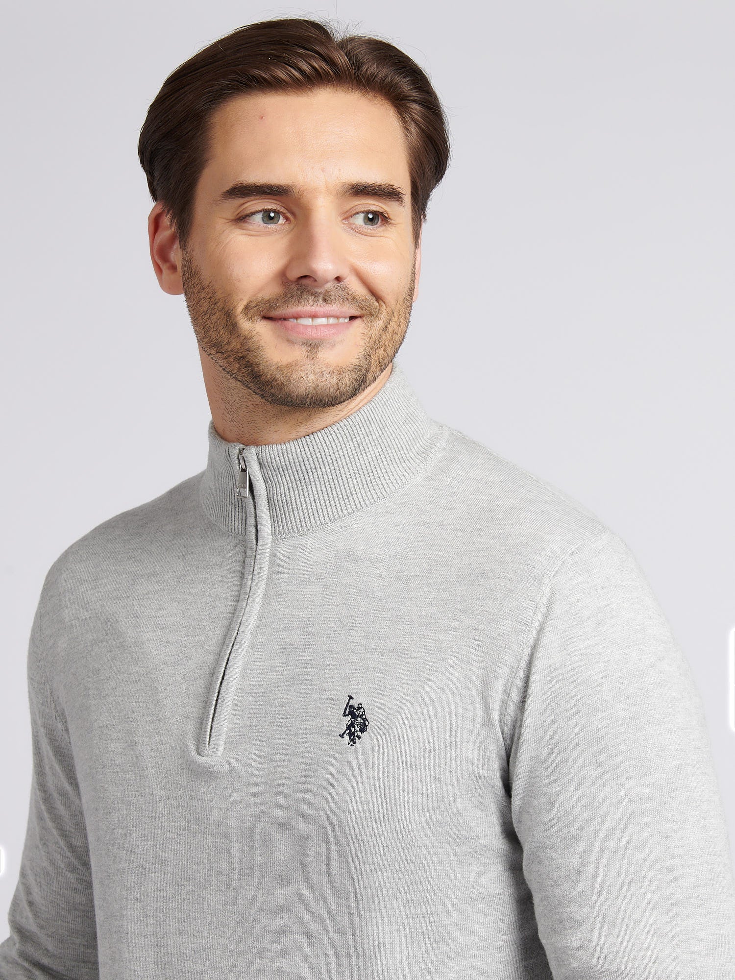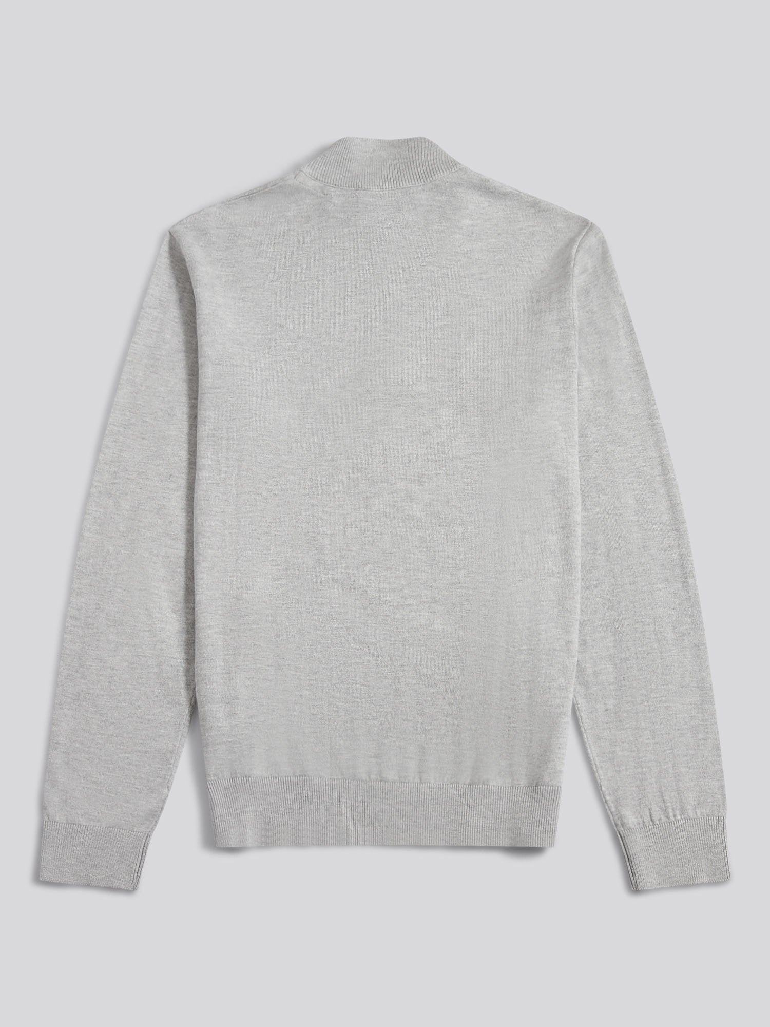 Mens Cotton Funnel Neck 1/4 Zip Knit in Mid Grey Marl